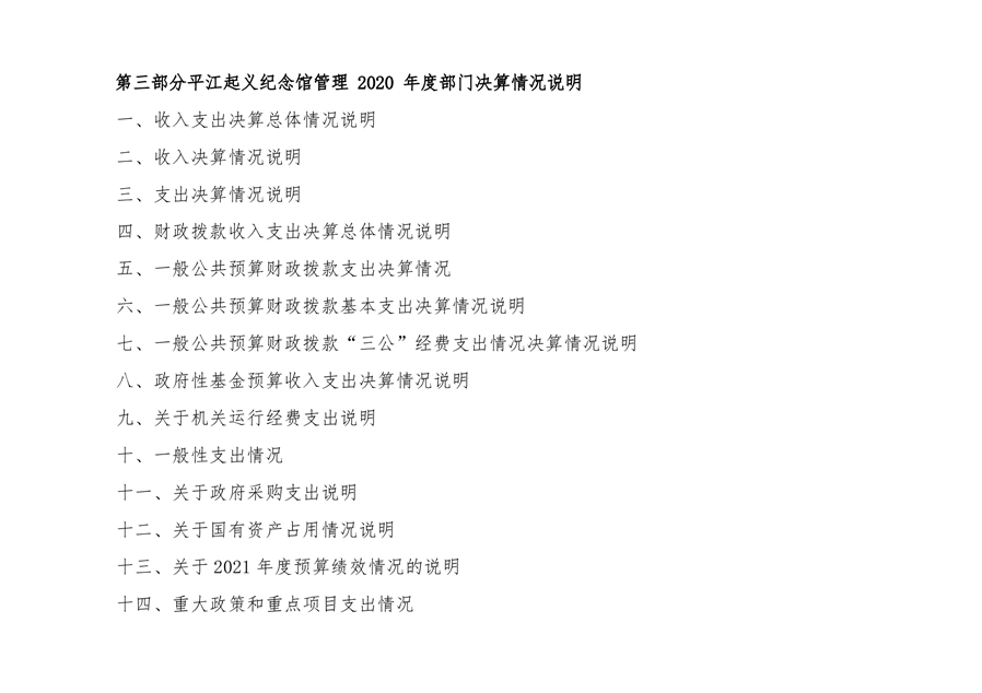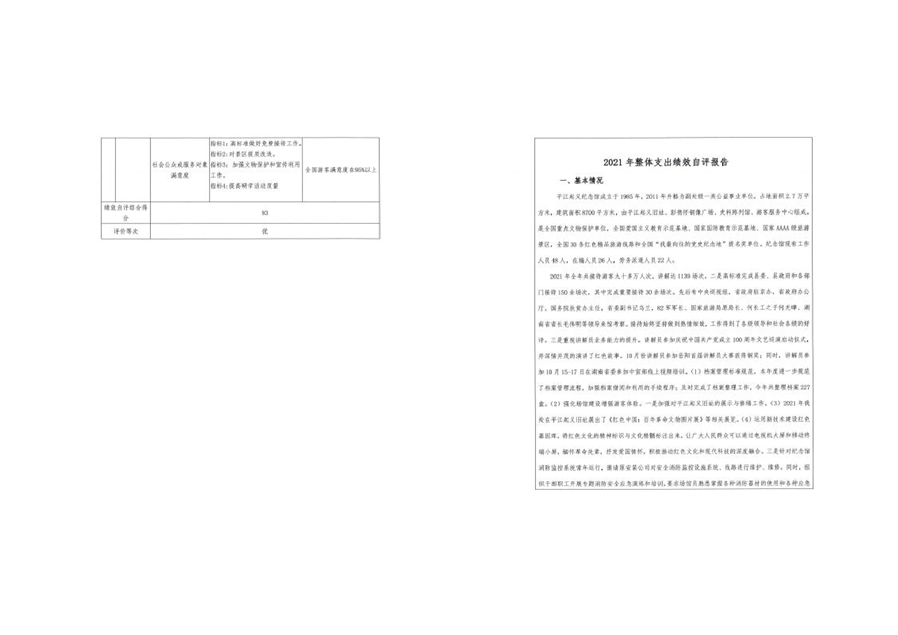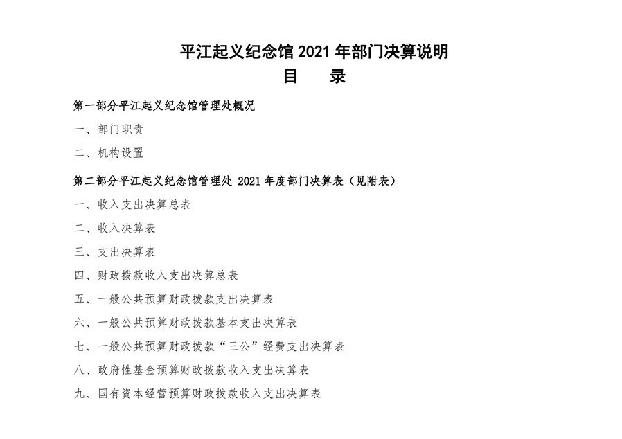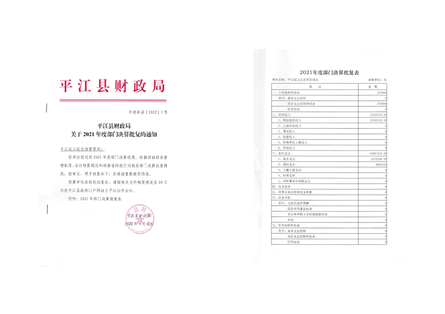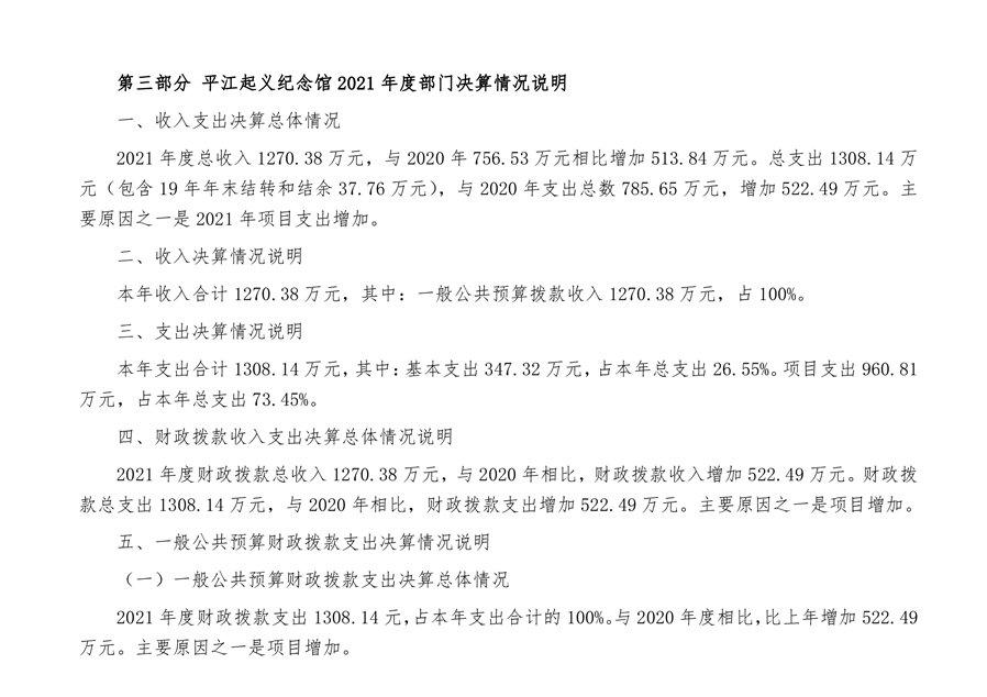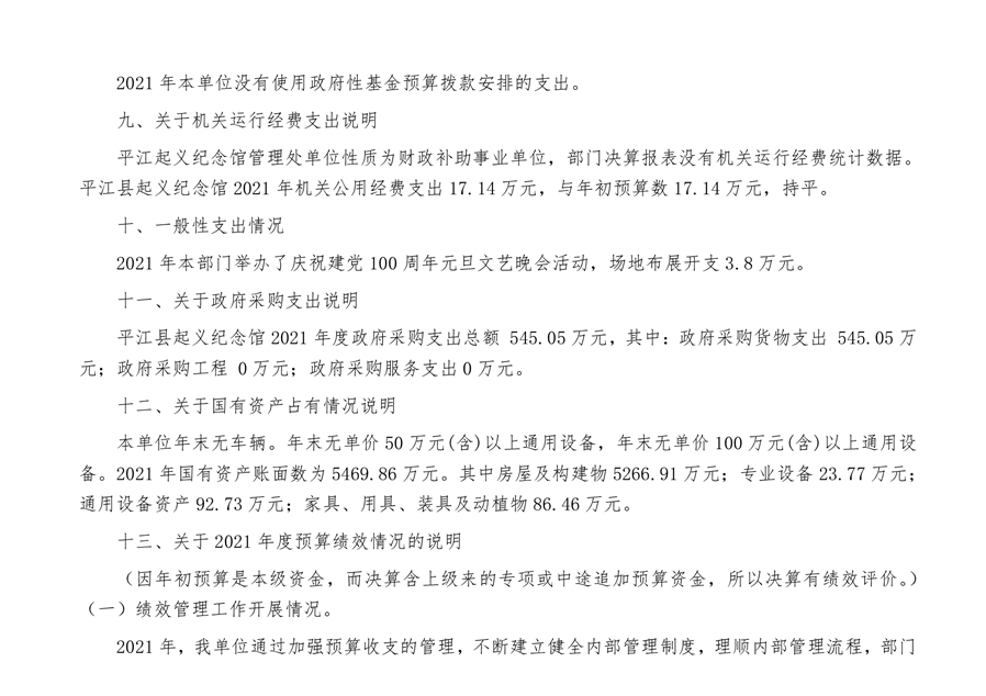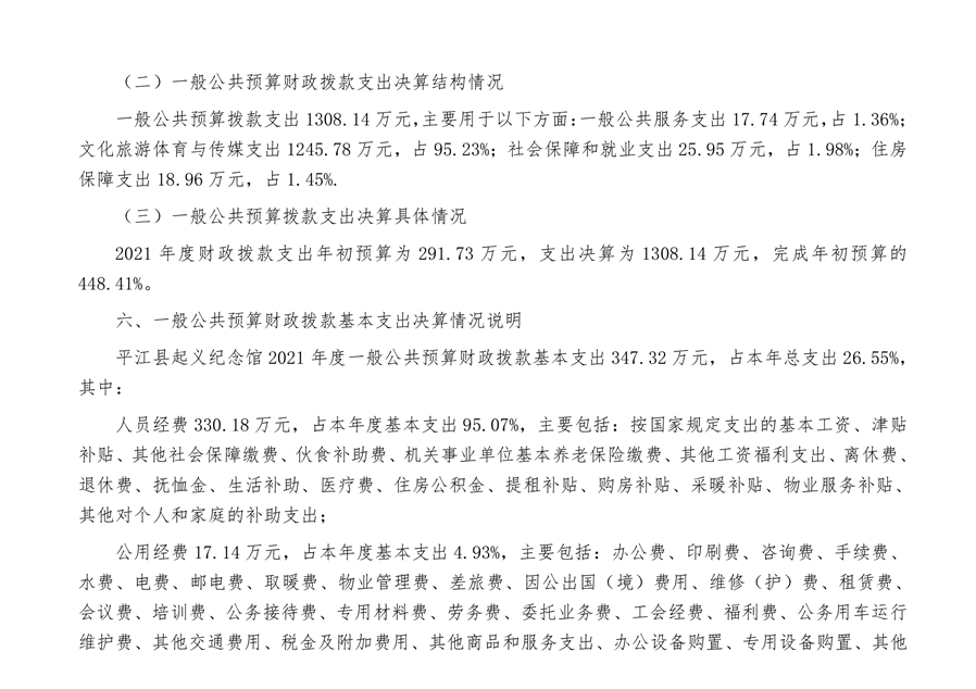 平江起义纪念馆2021年部门决算