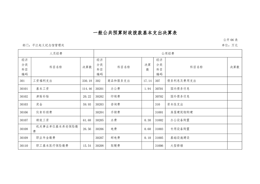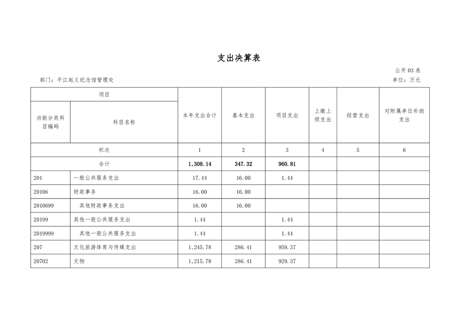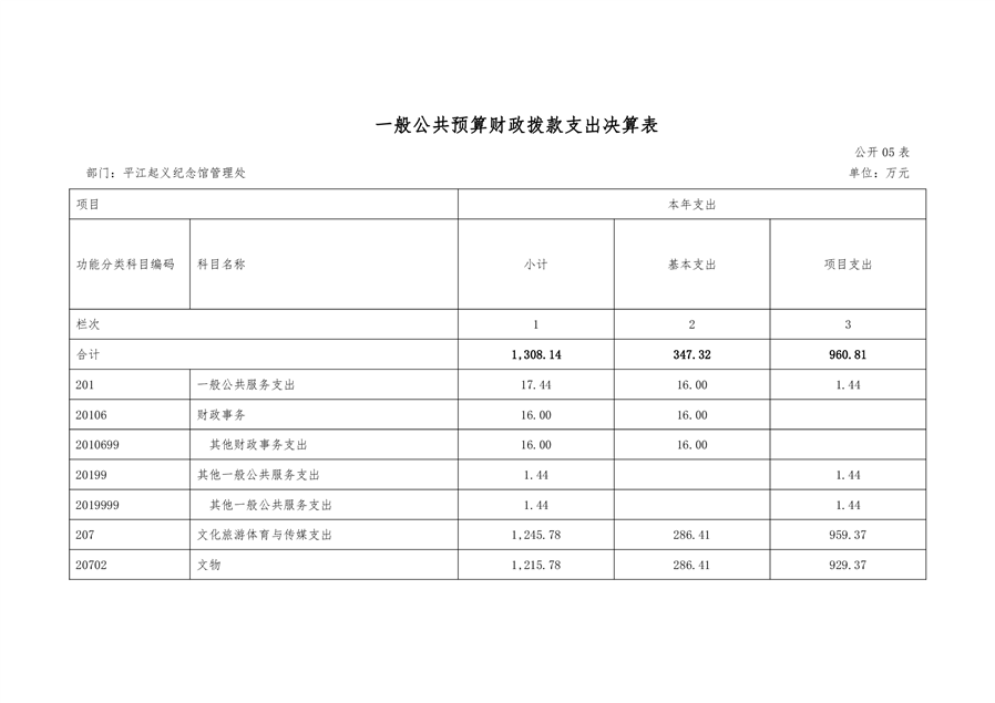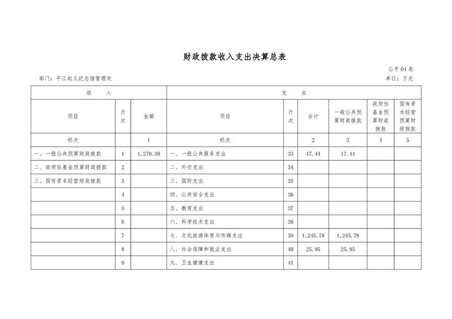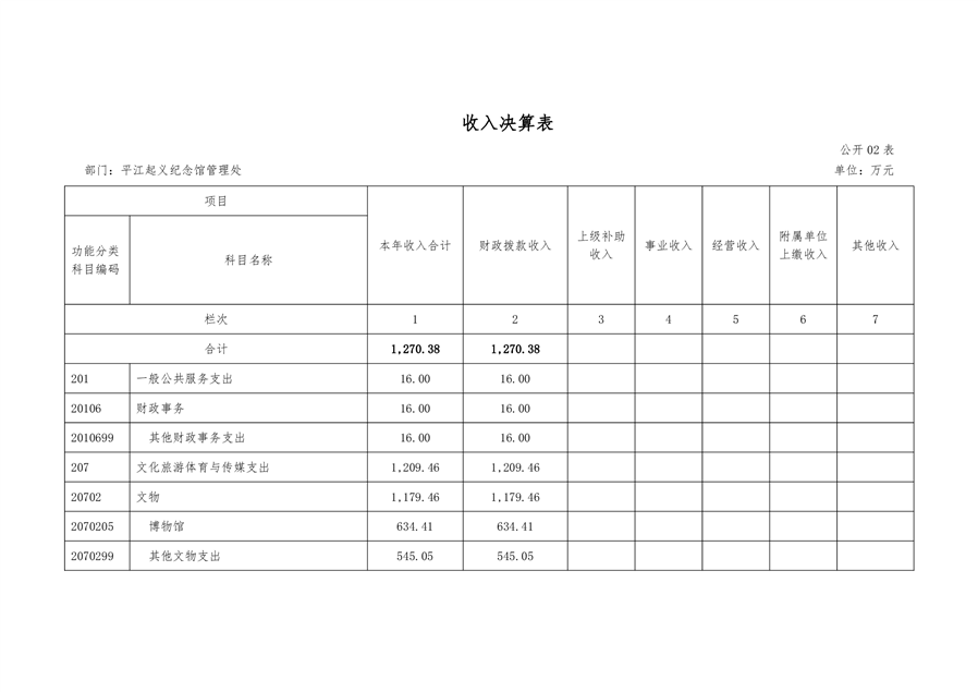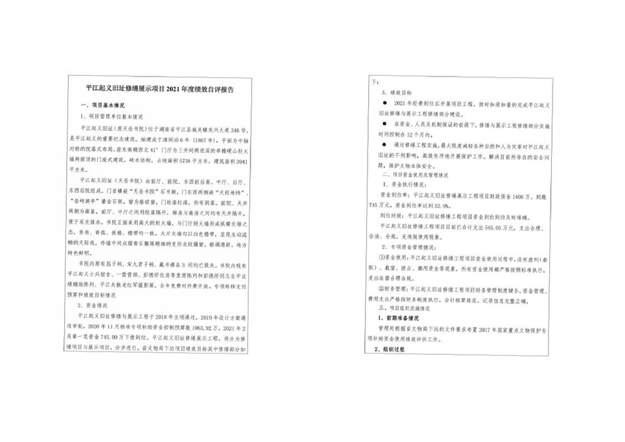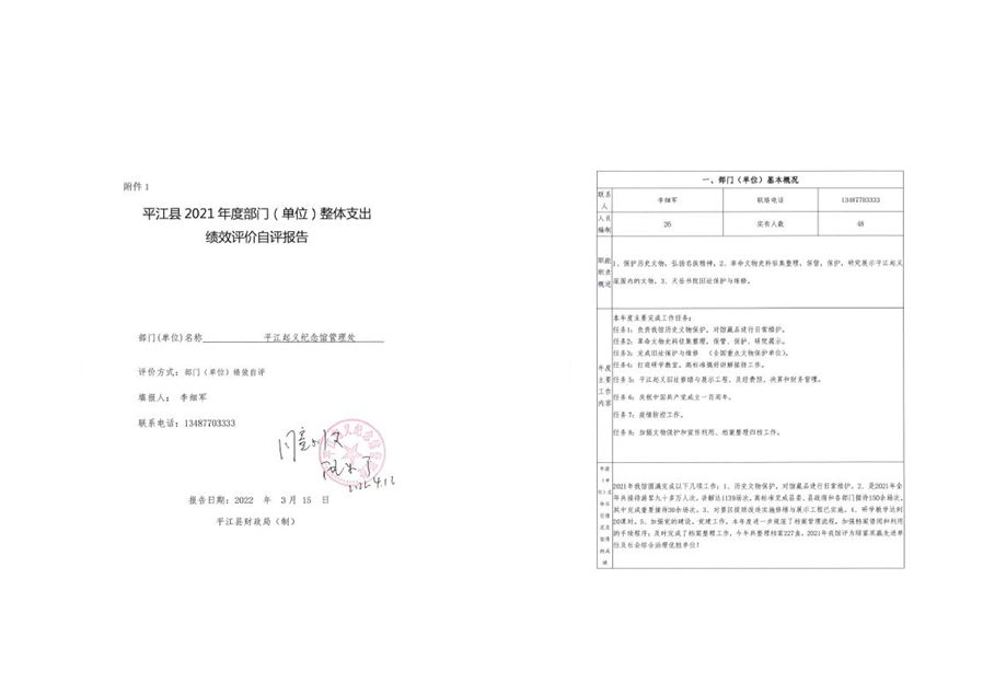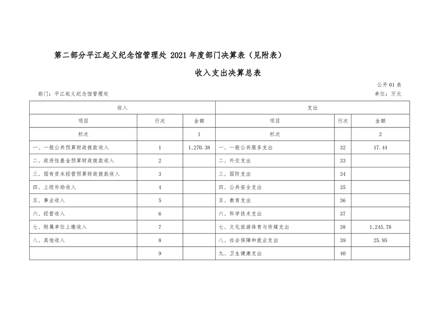 平江起义纪念馆2021年部门决算