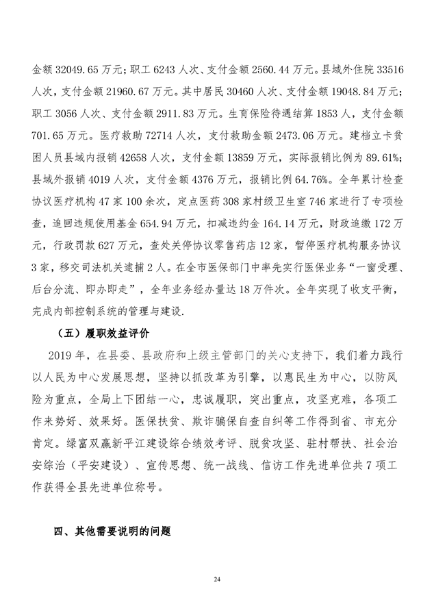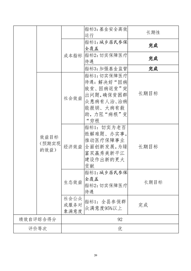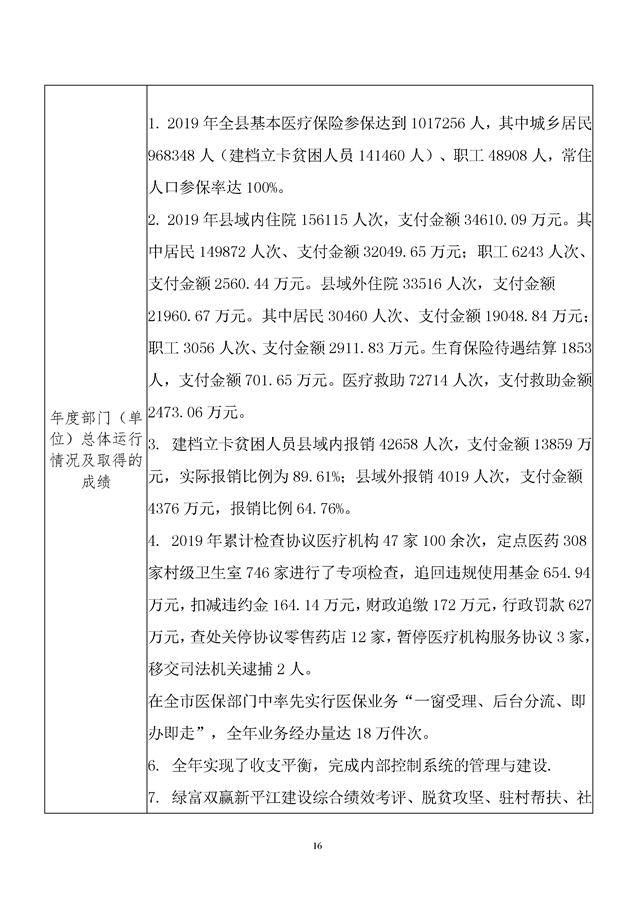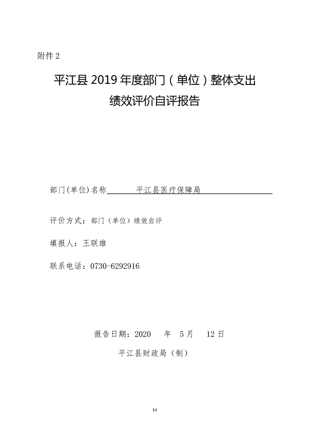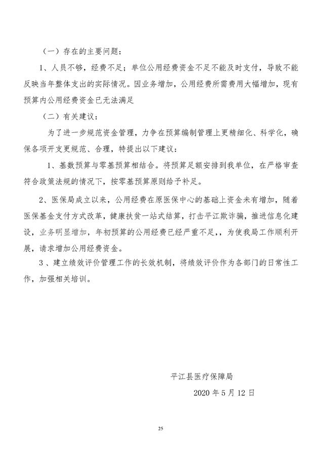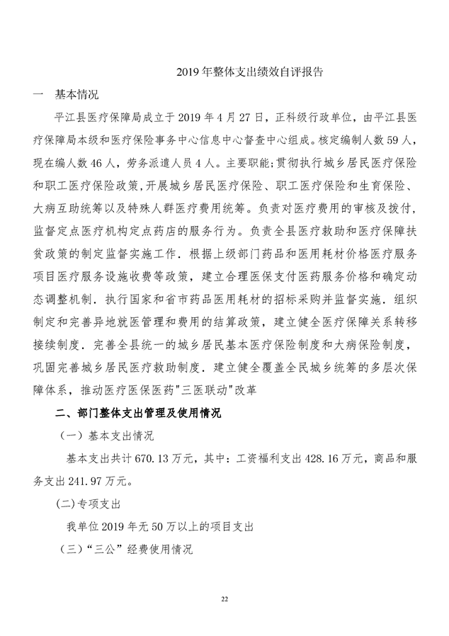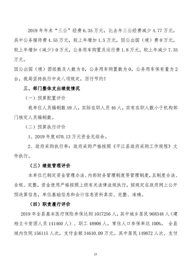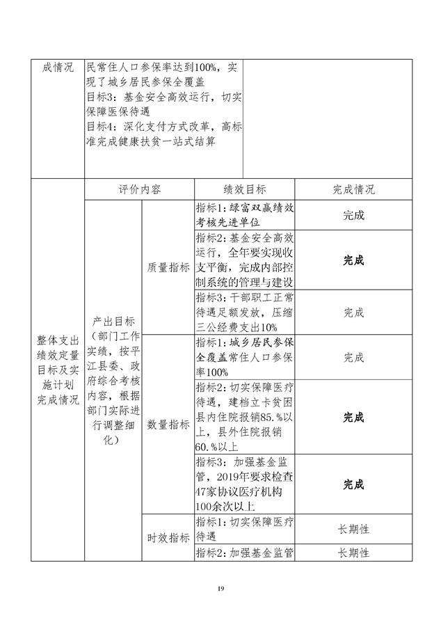 平江县医疗保障局2019年度整体支出绩效自评
