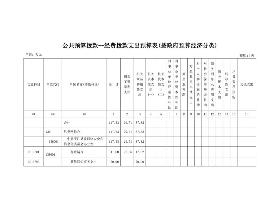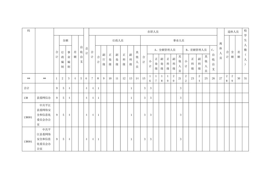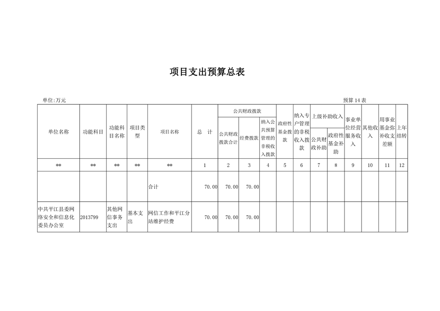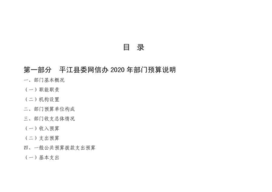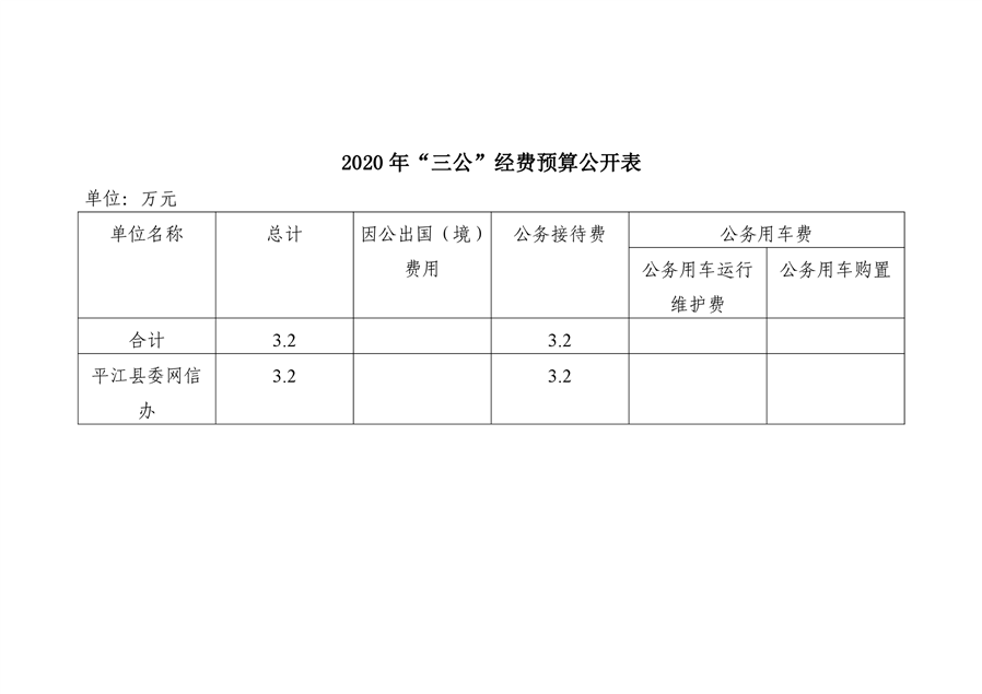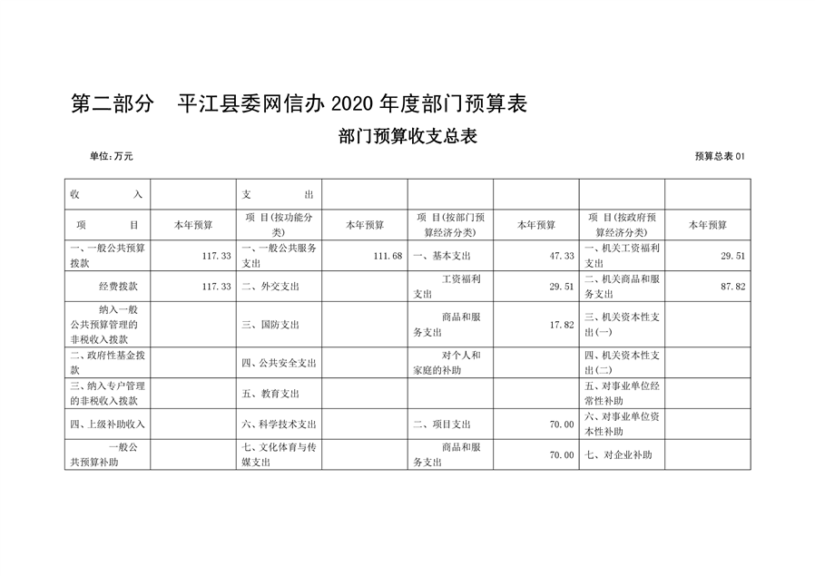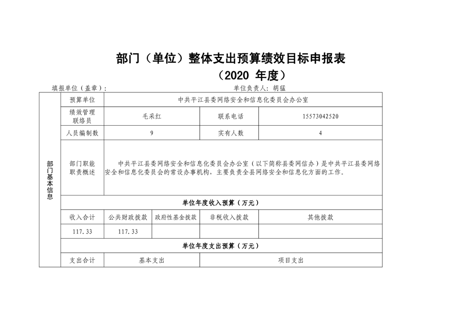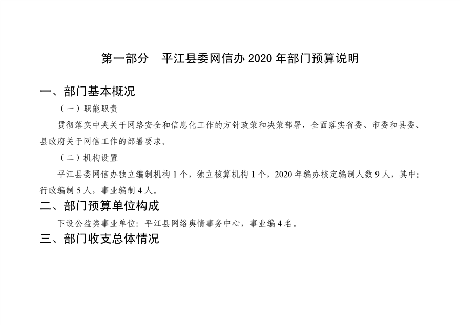 平江县委网络安全和信息化委员会办公室2020年部门预算