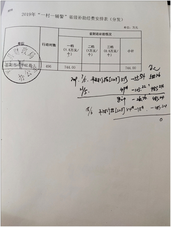 附:2019年“一村一辅警”省级补助经费安排表