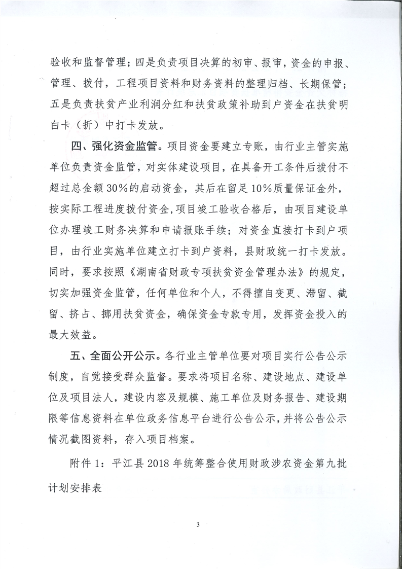 关于下达2018年第九批统筹整合使用财政涉农资金指标计划的通知-平财农指[2018]14号