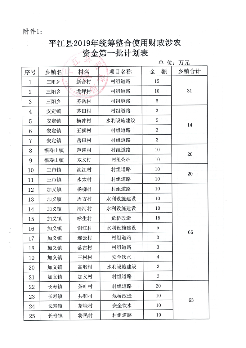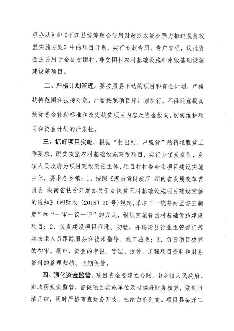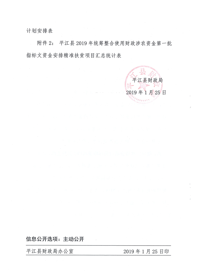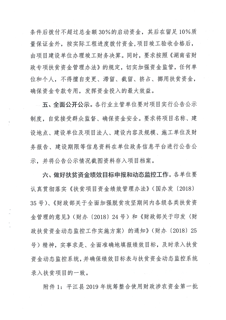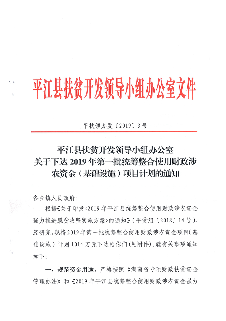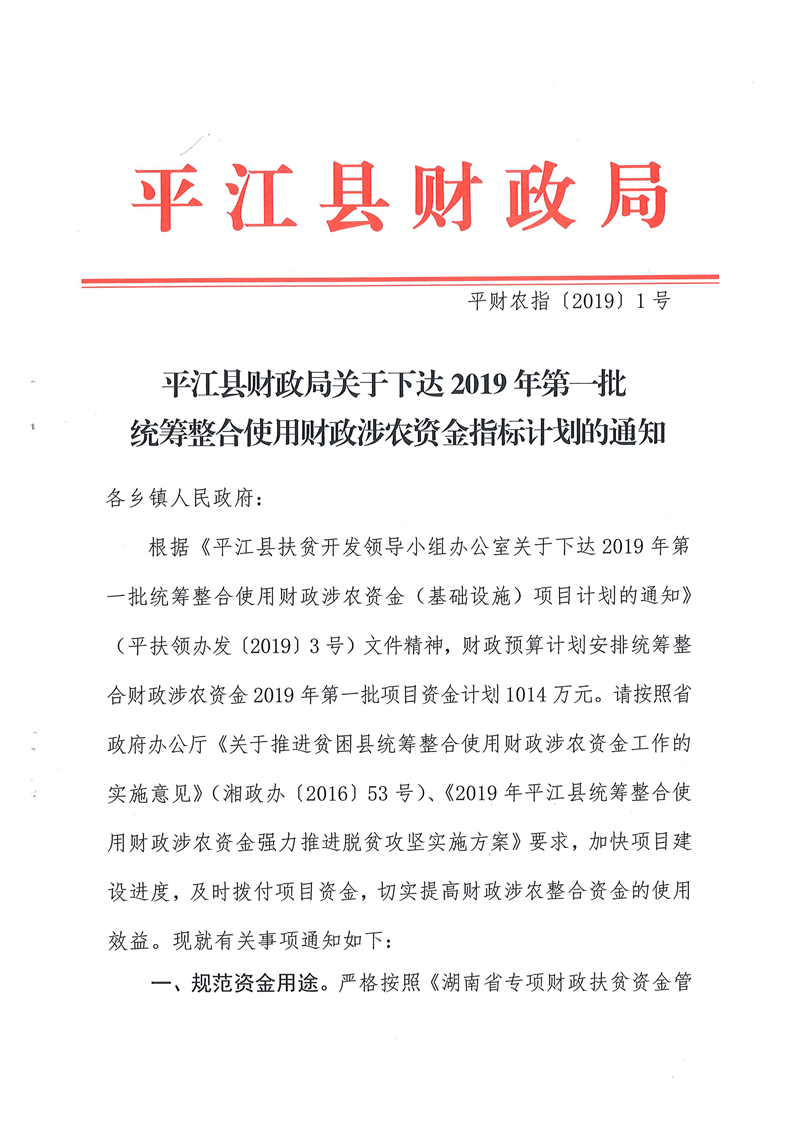 关于下达2019年第一批统筹整合使用财政涉农资金指标计划的通知-平财农指[2019]1号