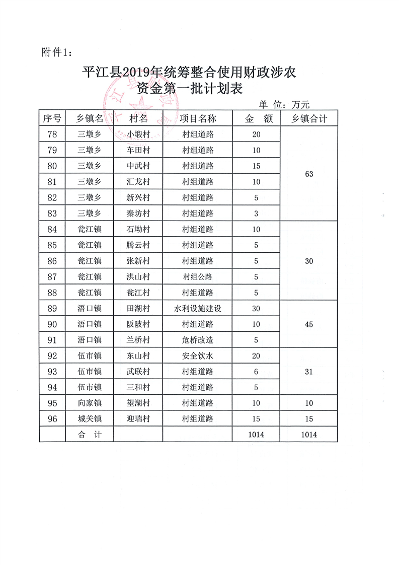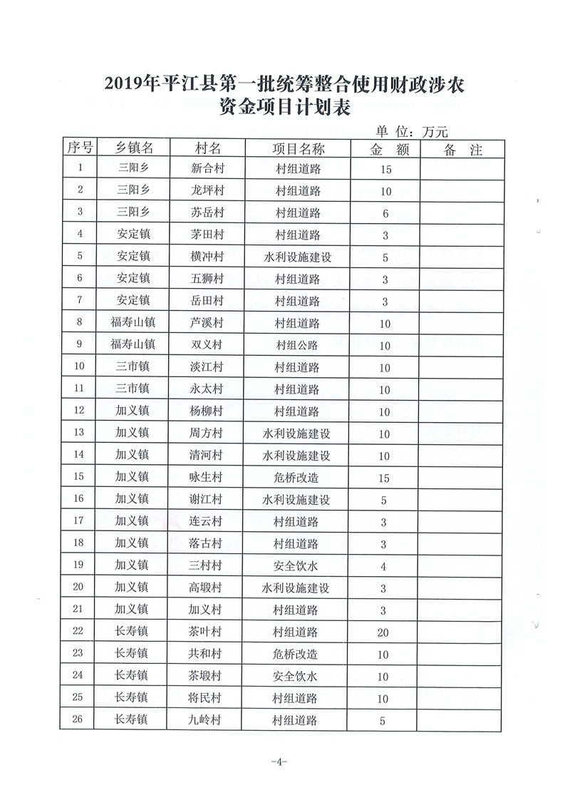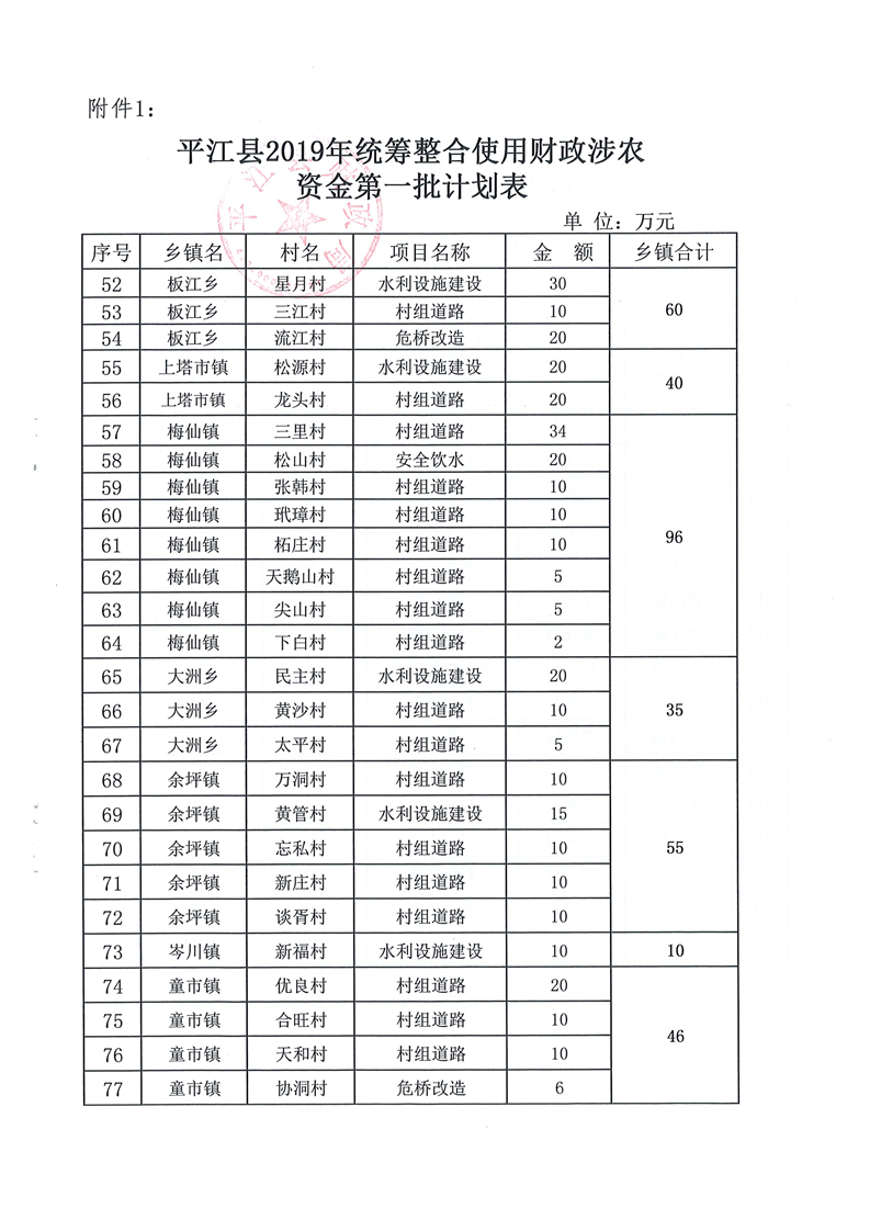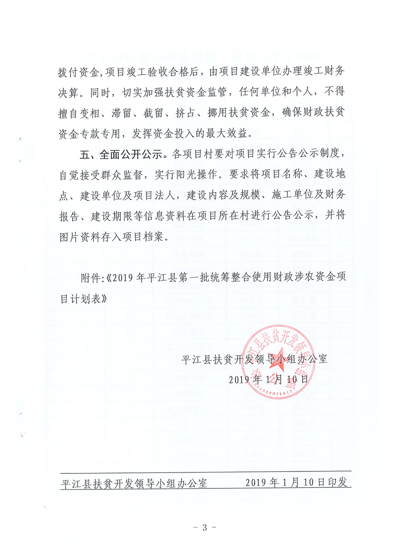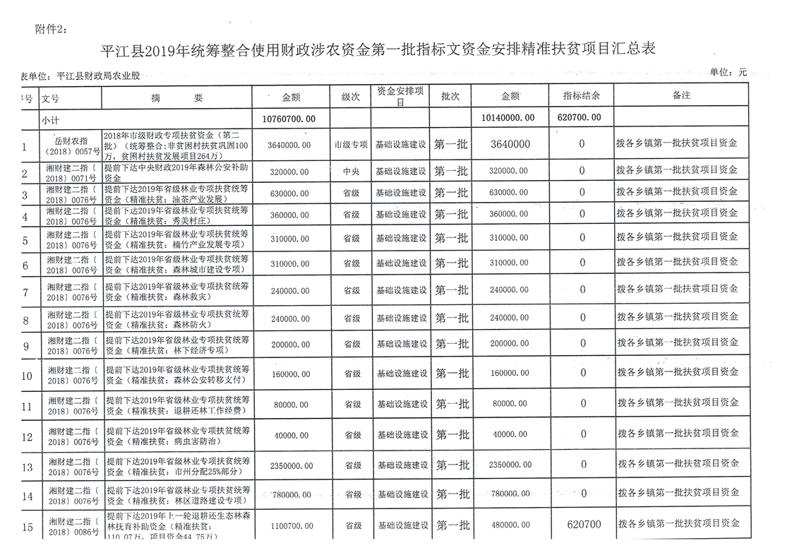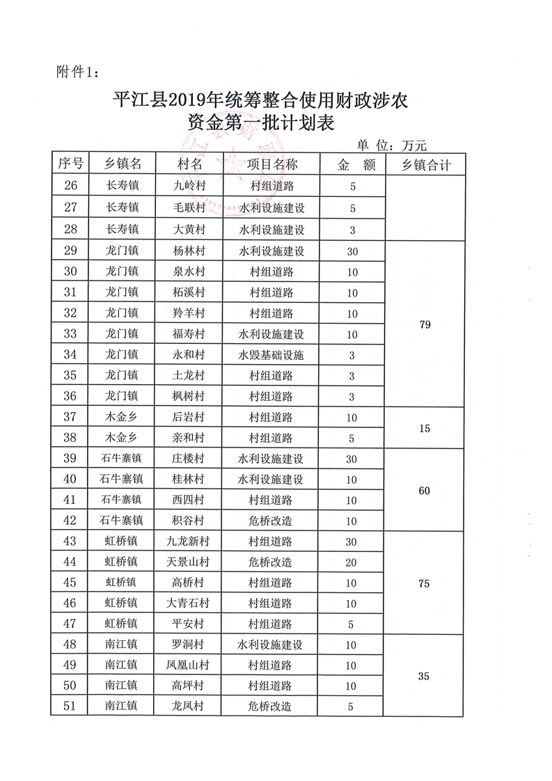 关于下达2019年第一批统筹整合使用财政涉农资金指标计划的通知-平财农指[2019]1号