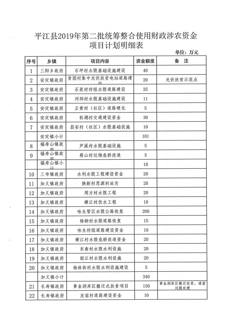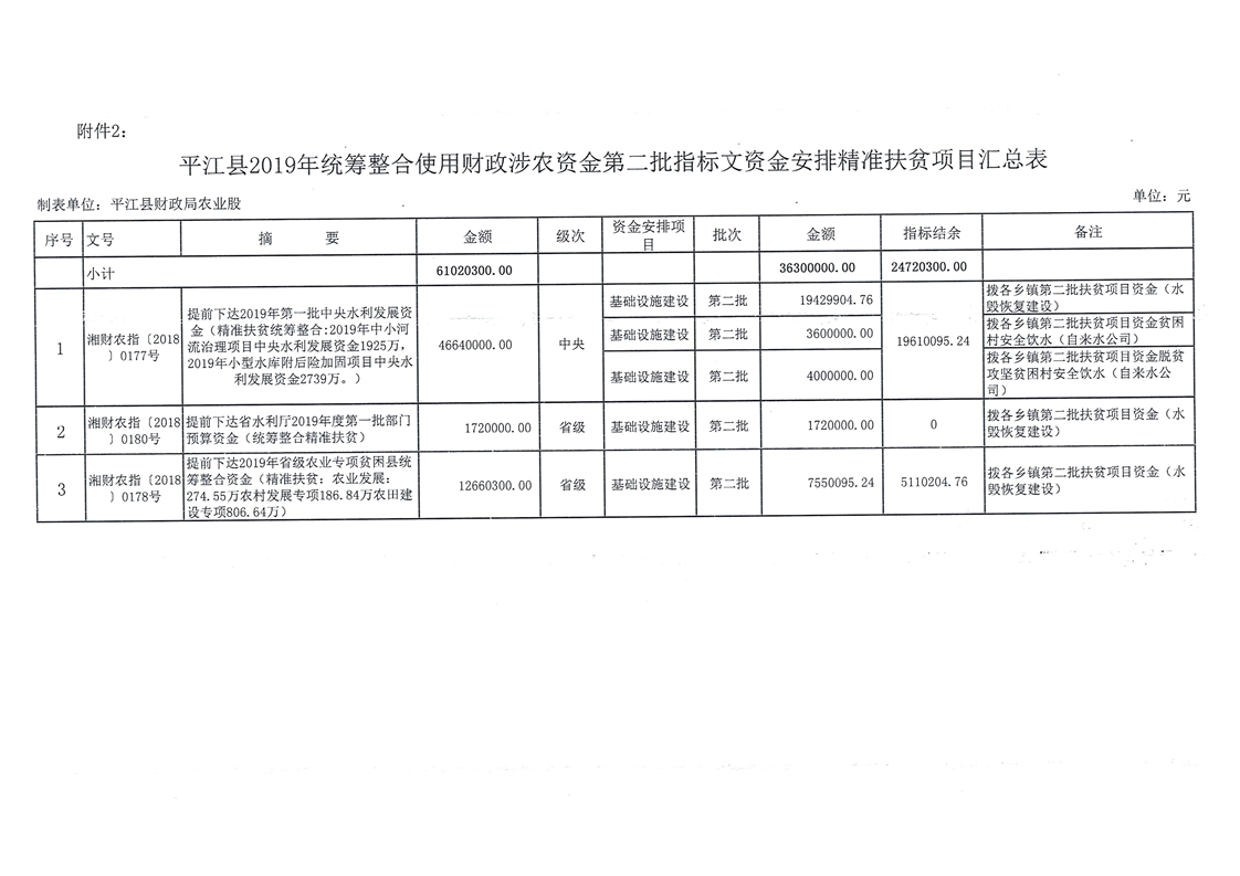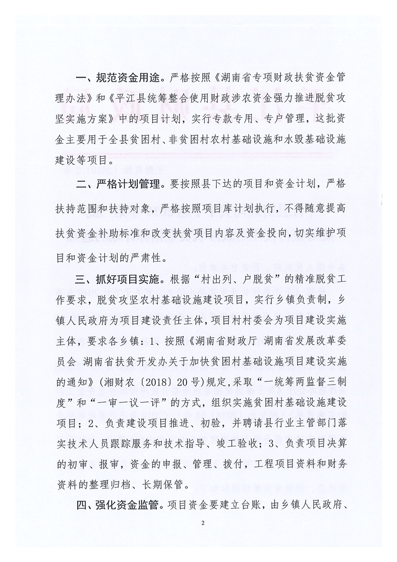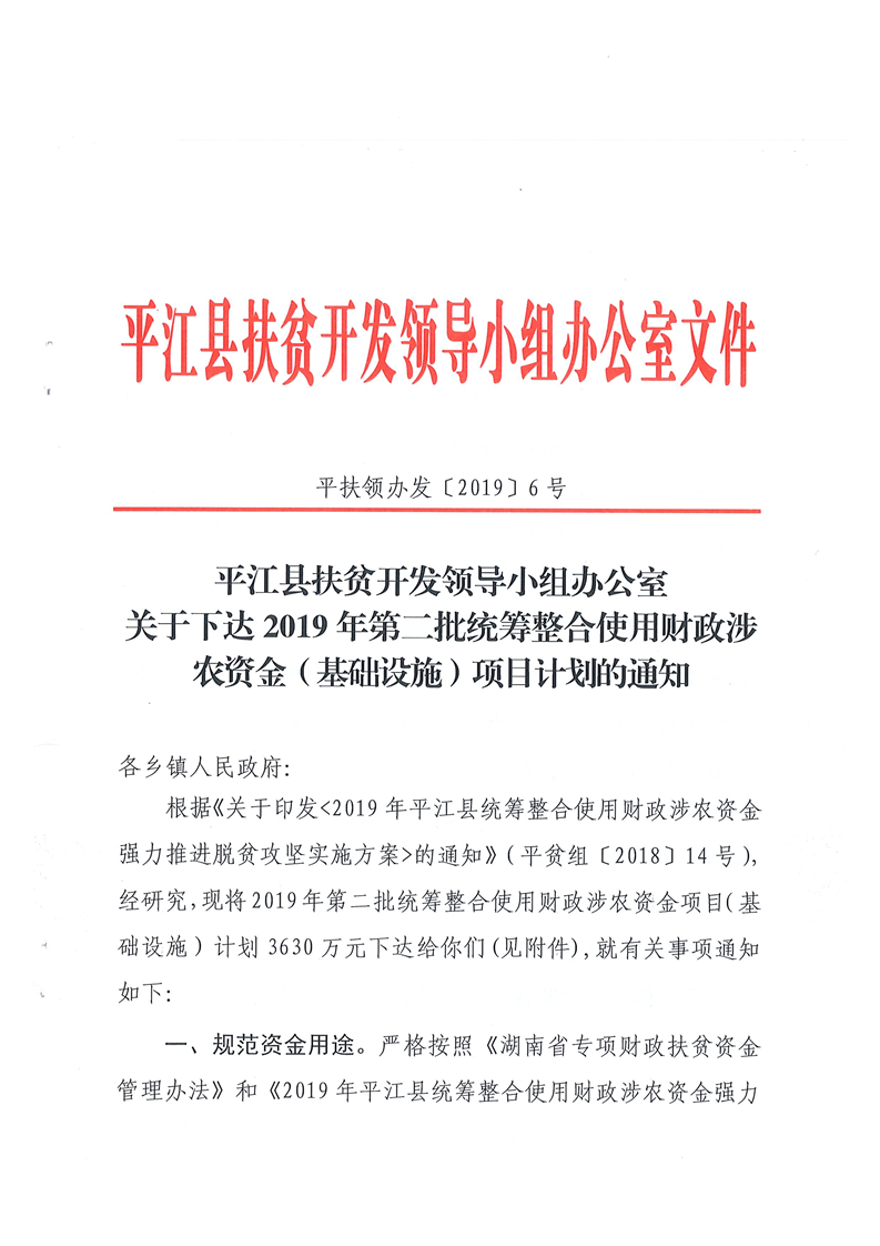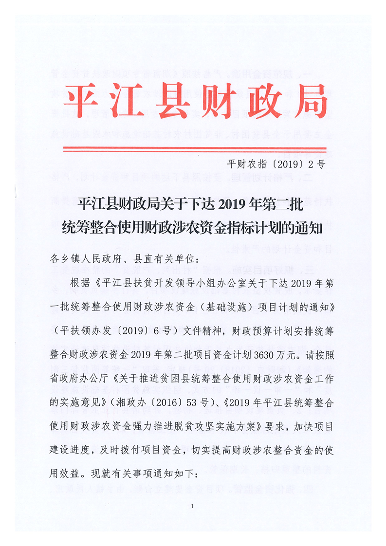 关于下达2019年第二批统筹整合使用财政涉农资金指标计划的通知-平财农指[2019]2号