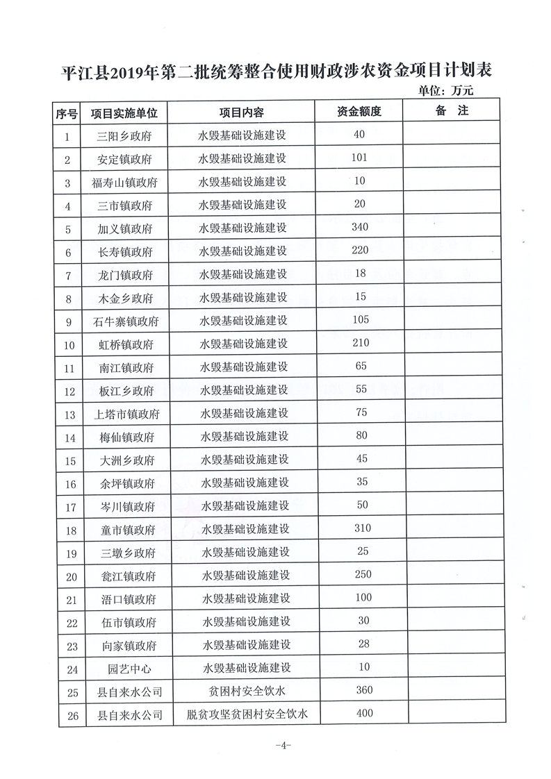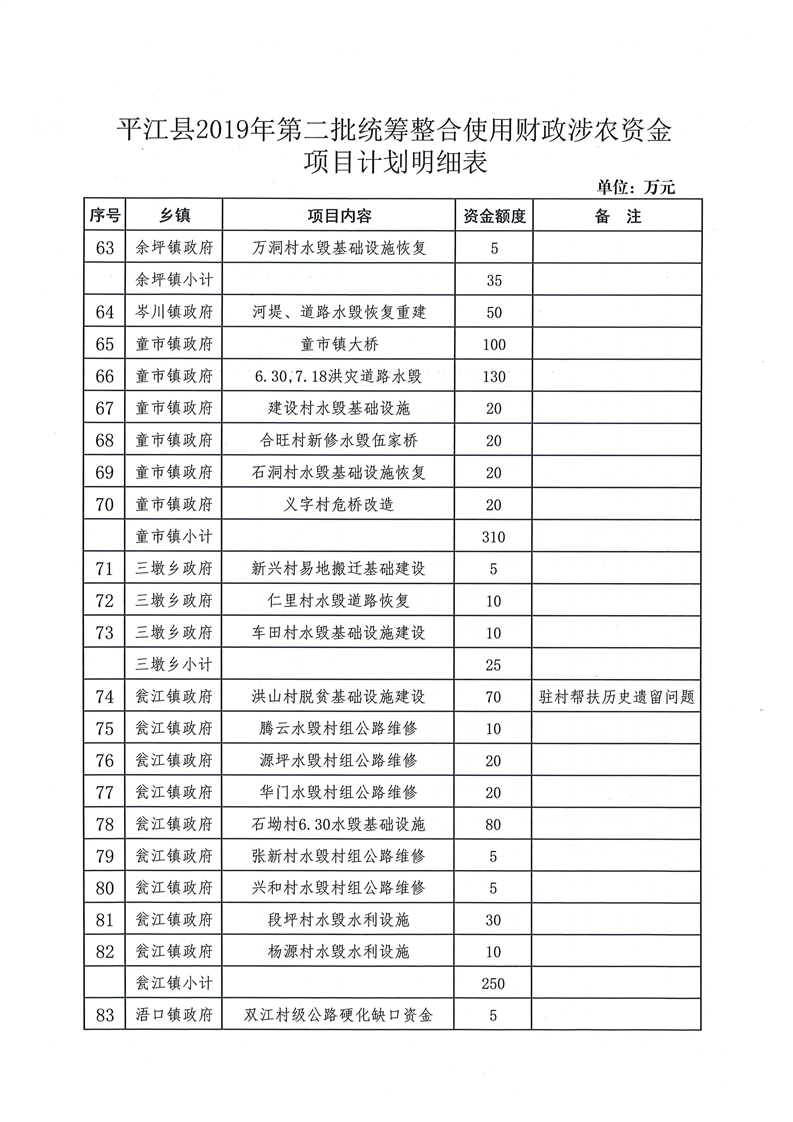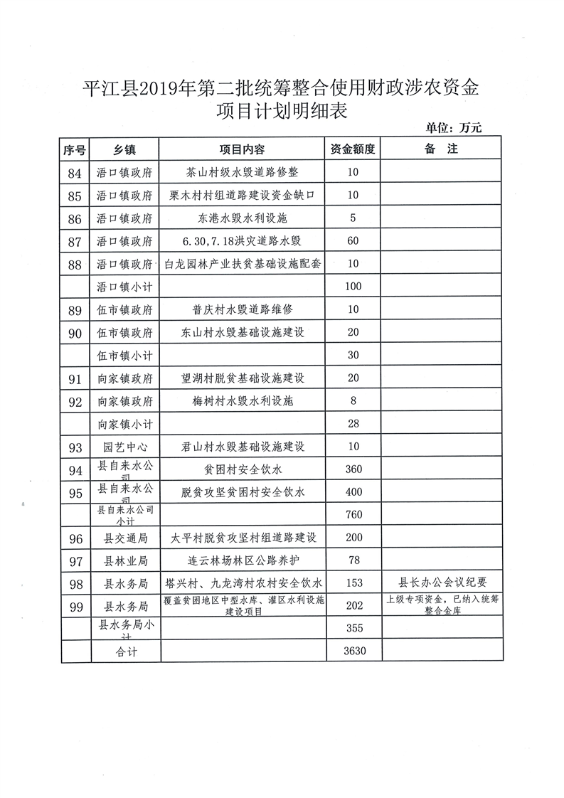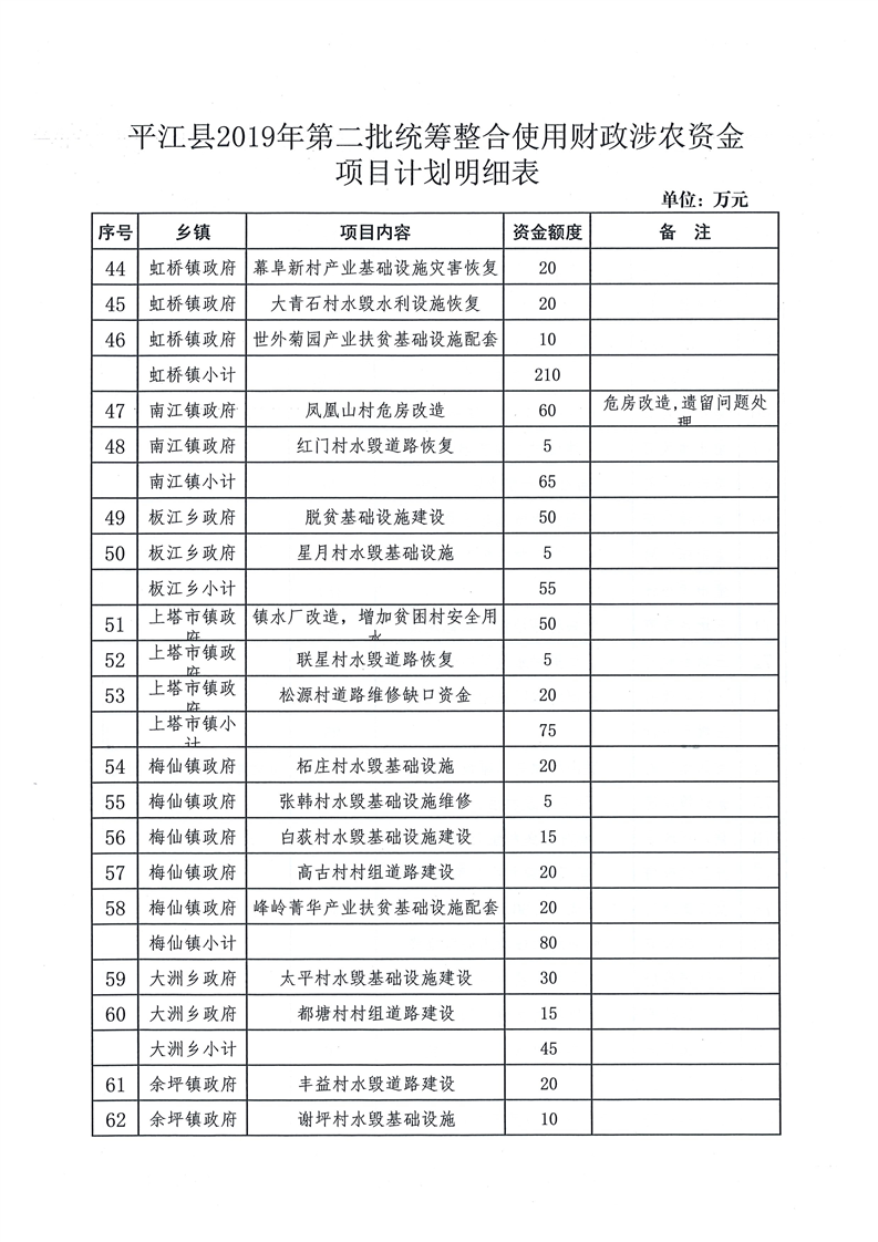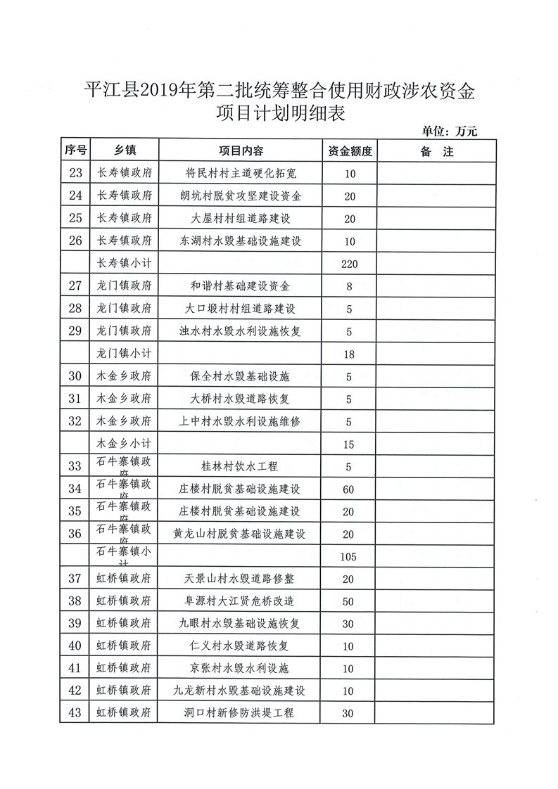关于下达2019年第二批统筹整合使用财政涉农资金指标计划的通知-平财农指[2019]2号