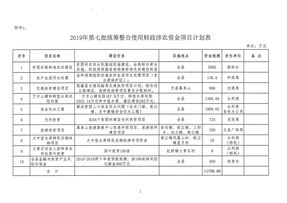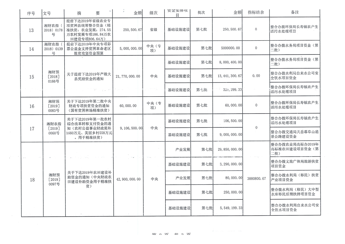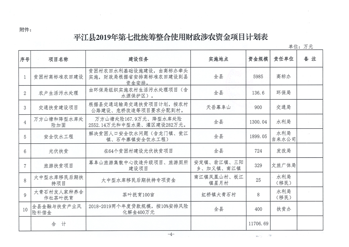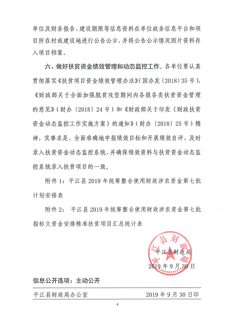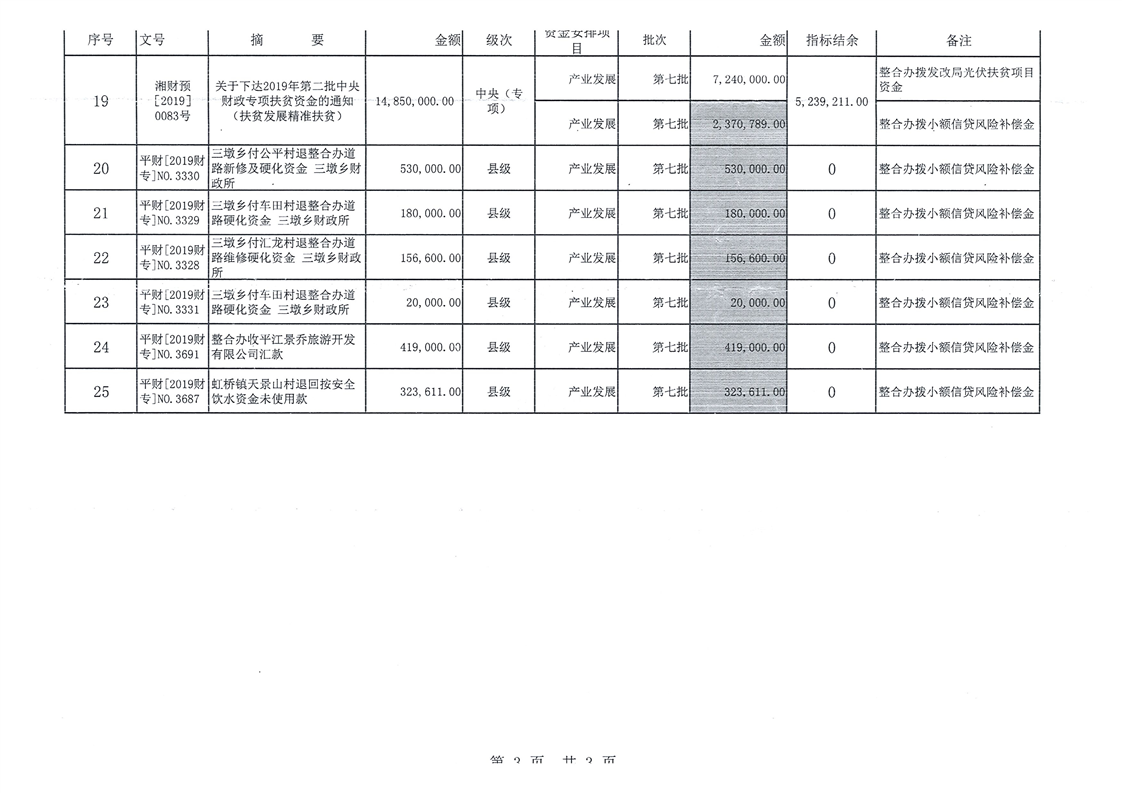 关于下达2019年第七批统筹整合使用财政涉农资金指标计划的通知(平扶领办发[2019]39号)