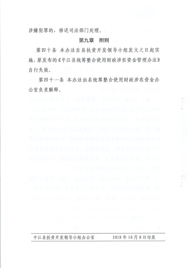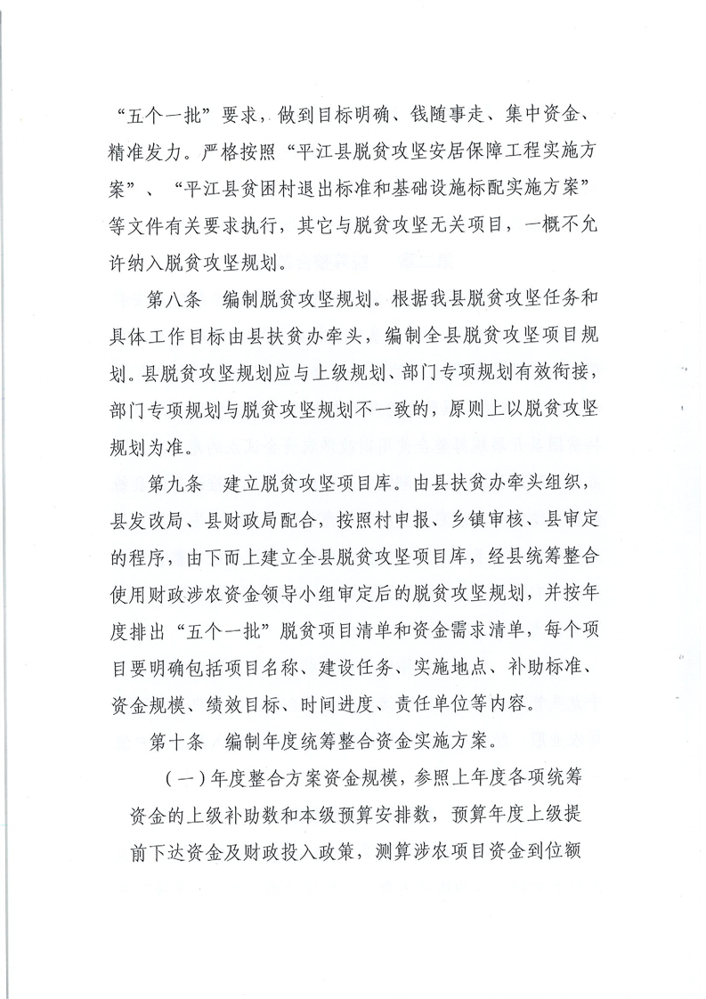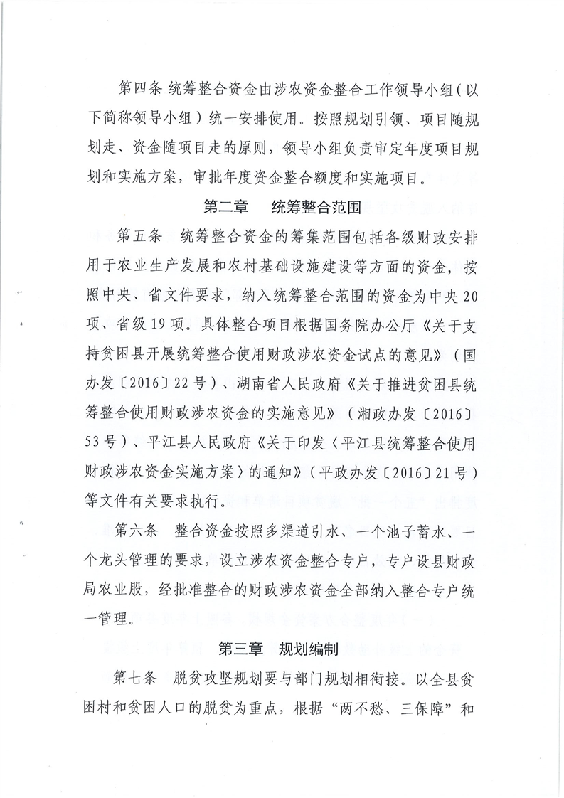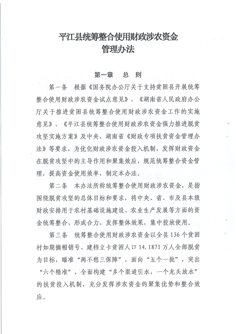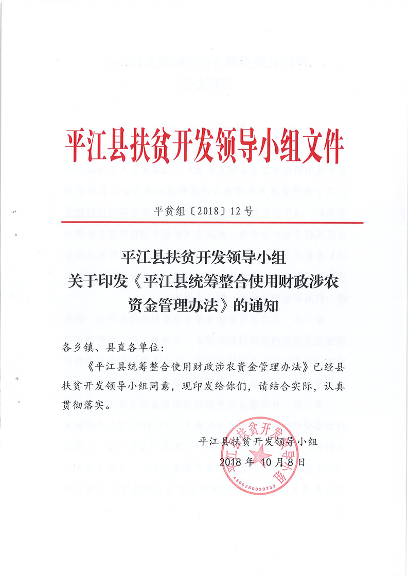 平贫组〔2018〕12号关于印发《平江县统筹整合使用财政涉农资金管理办法》的通知