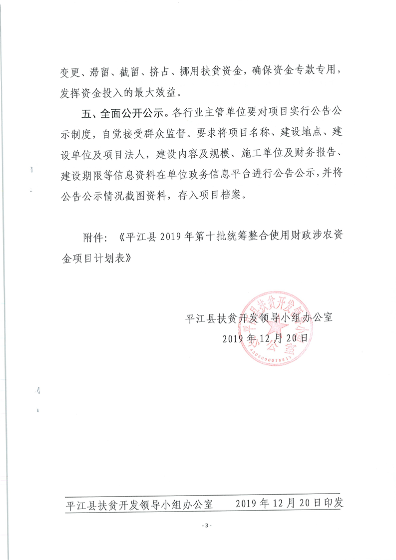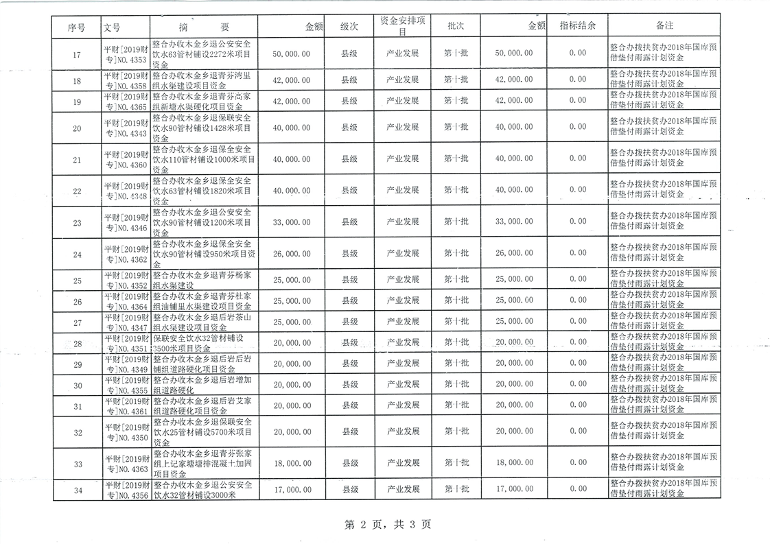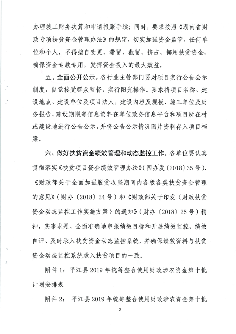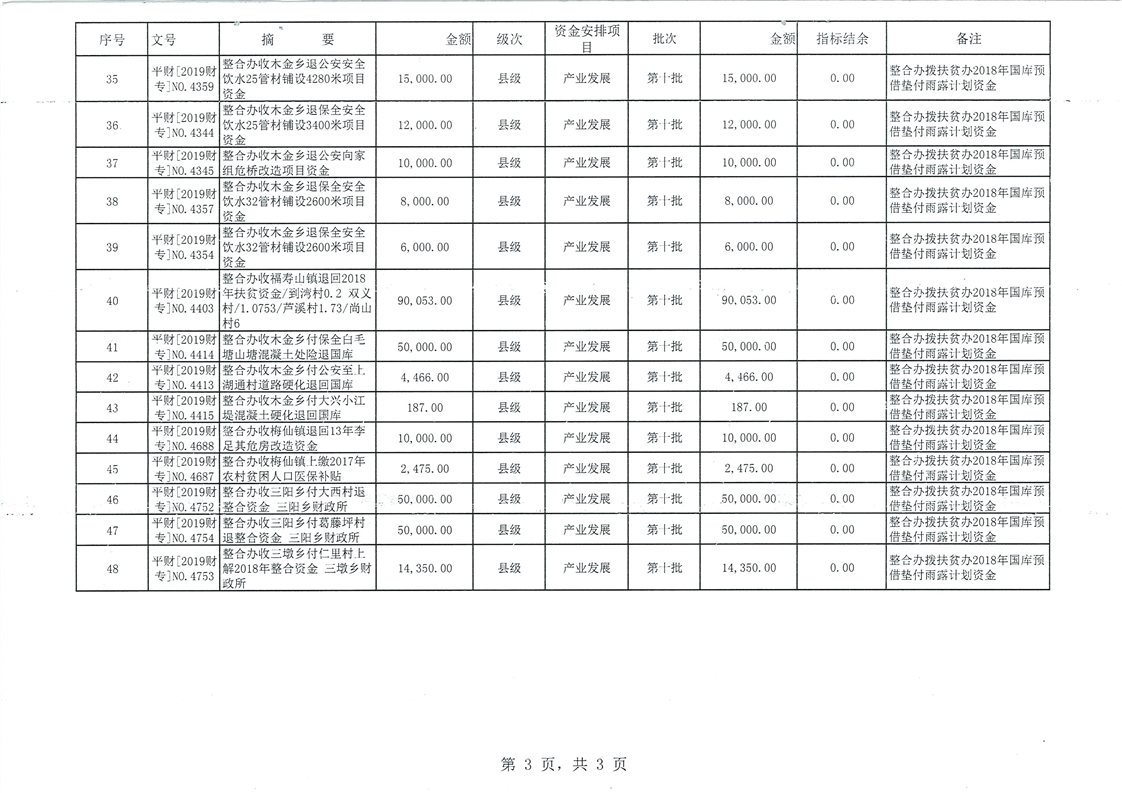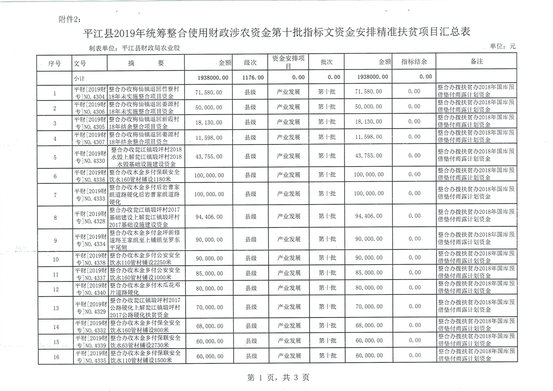 关于下达2019年第十批统筹整合使用财政涉农资金指标计划的通知-平财农指[2019]10号