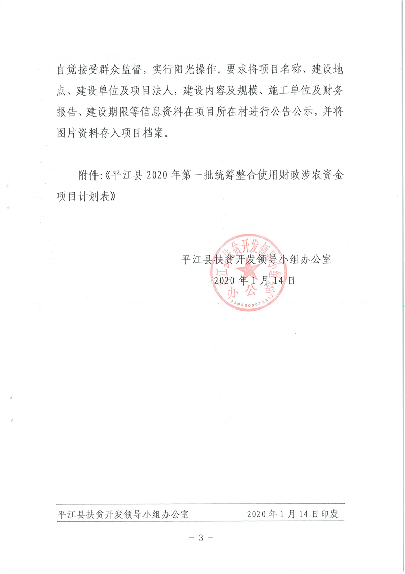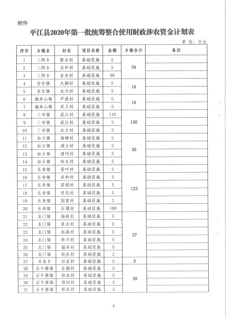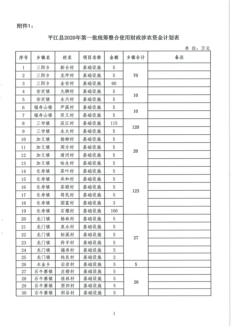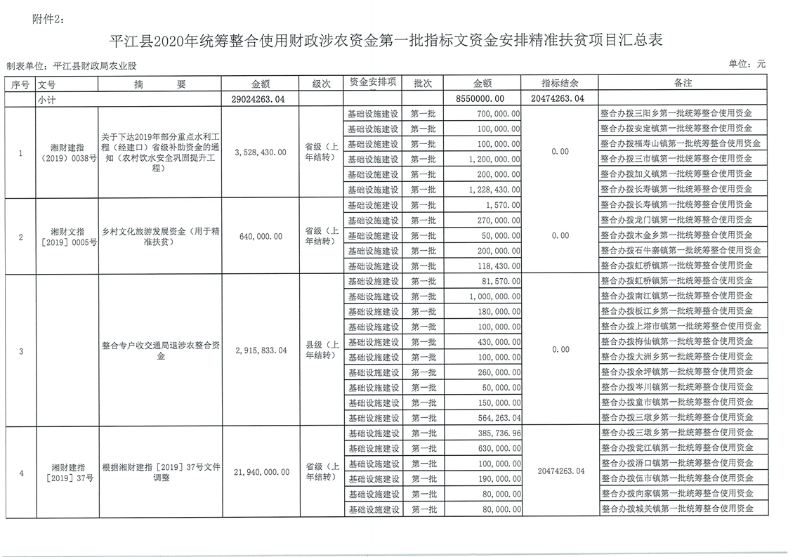 关于下达2020年第一批统筹整合使用财政涉农资金指标计划的通知-平财农指[2020]1号