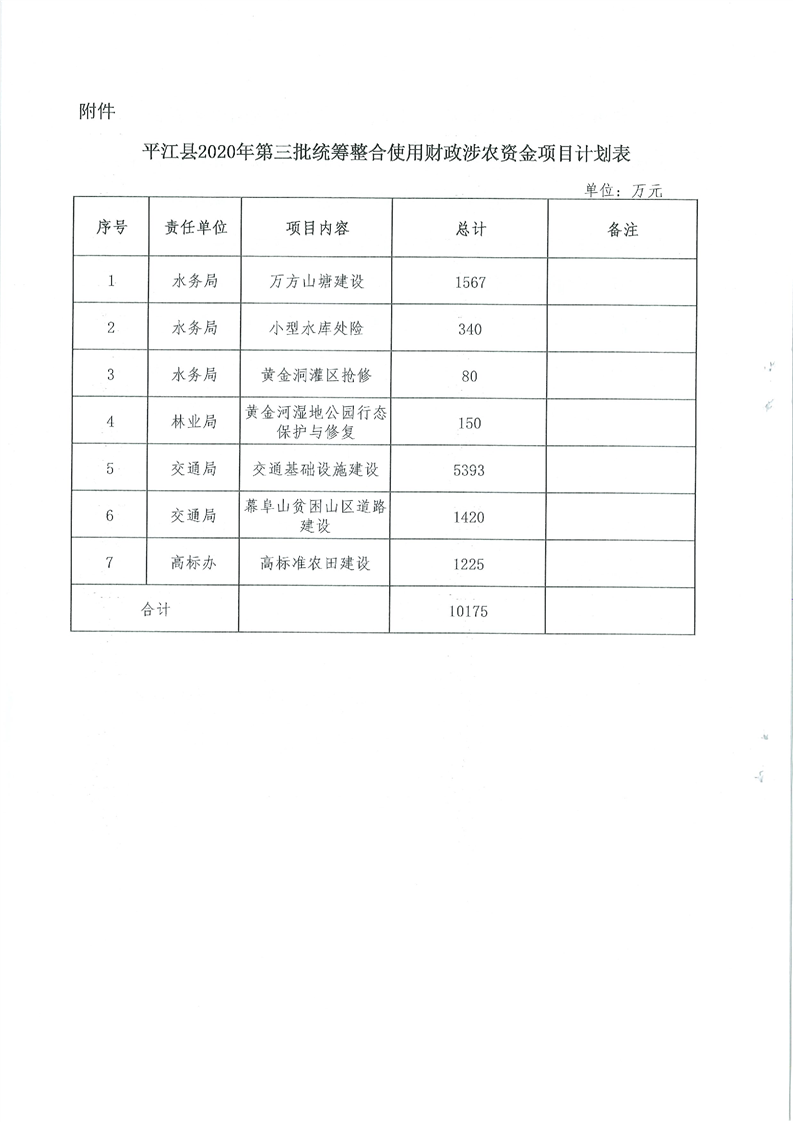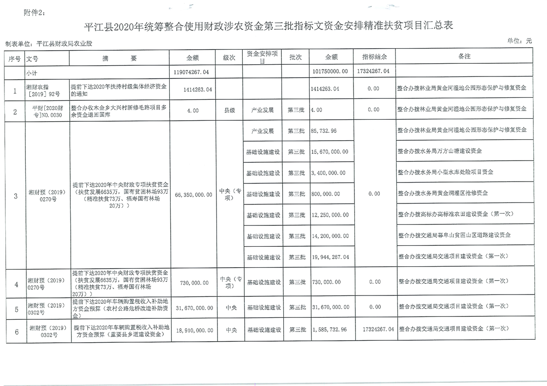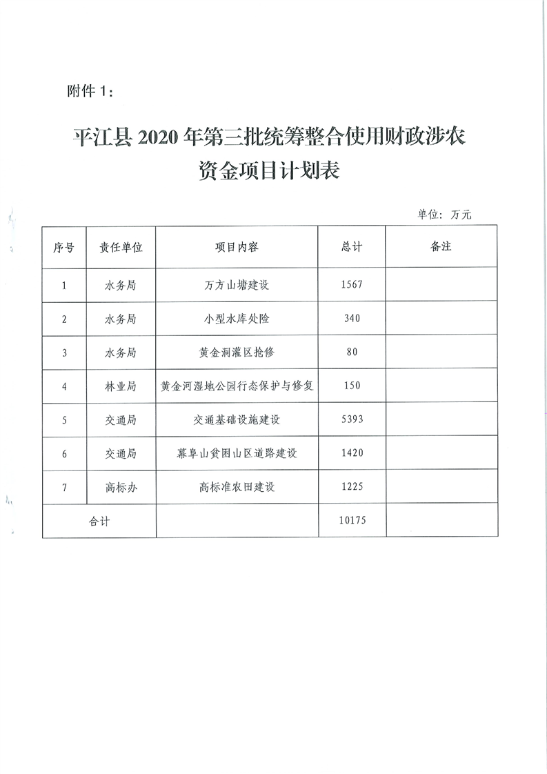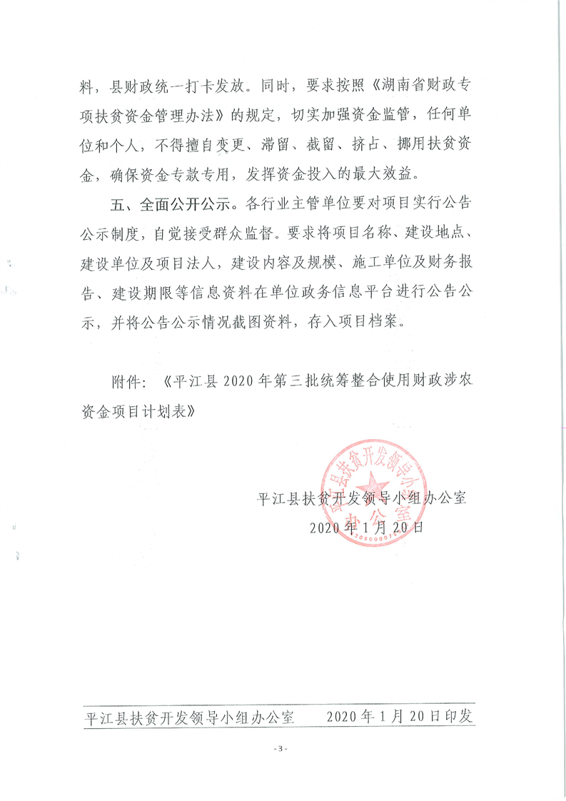 关于下达2020年第三批统筹整合使用财政涉农资金指标计划的通知-平财农指[2020]4号