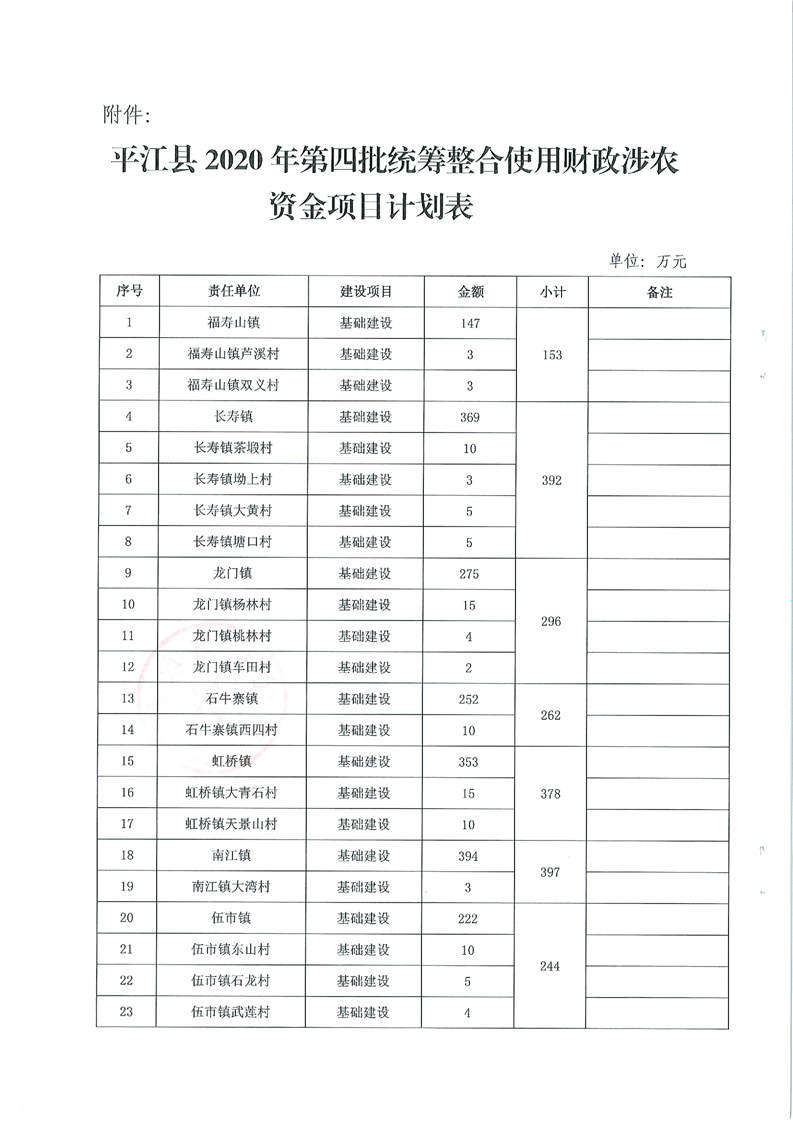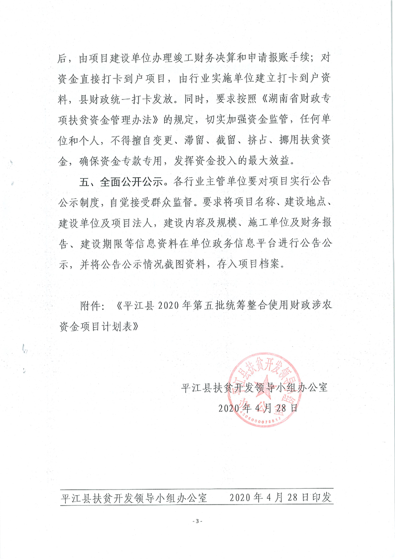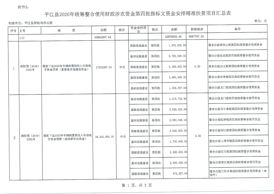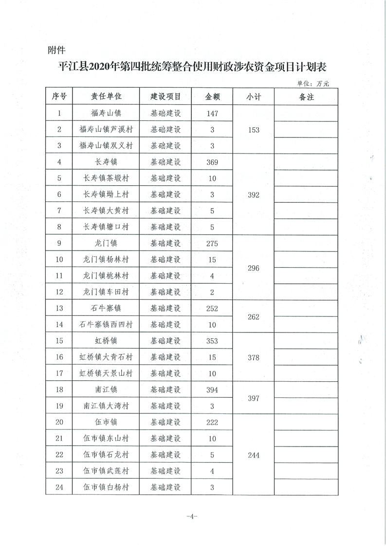 关于下达2020年第四批统筹整合使用财政涉农资金指标计划的通知-平财农指[2020]5号