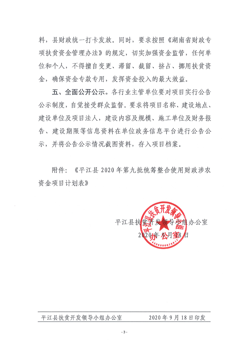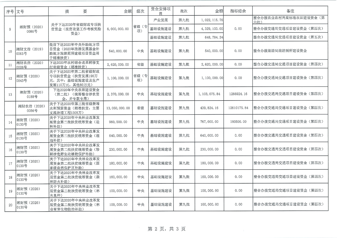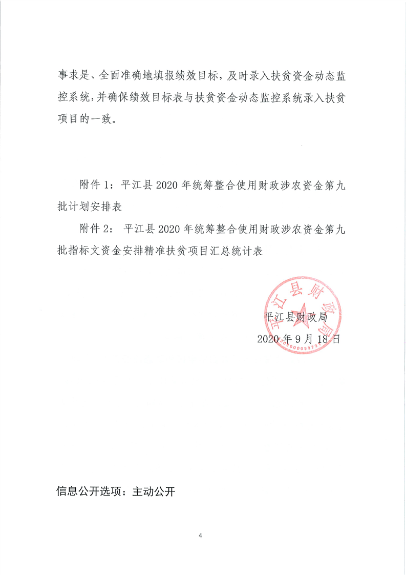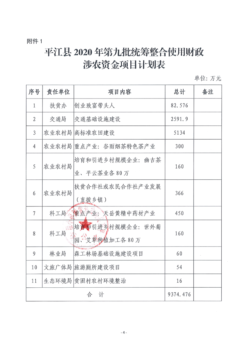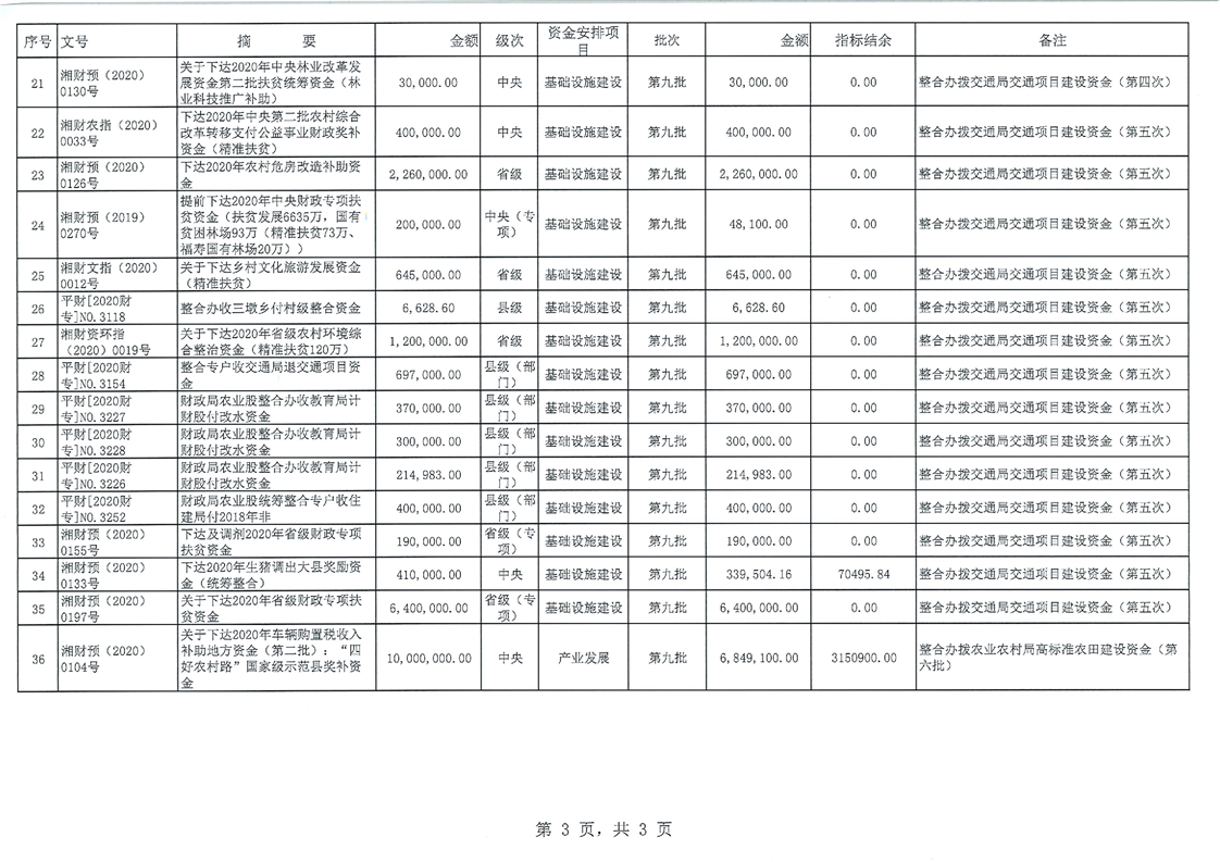 关于下达2020年第九批统筹整合使用财政涉农资金指标计划的通知-平财农指[2020]10号