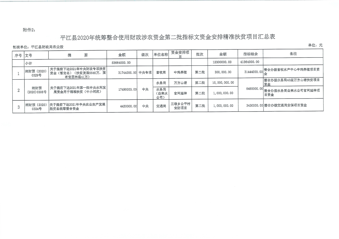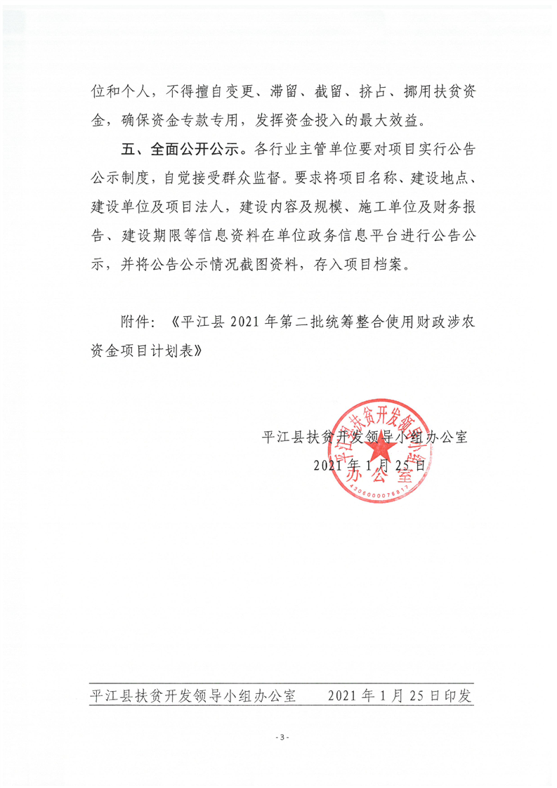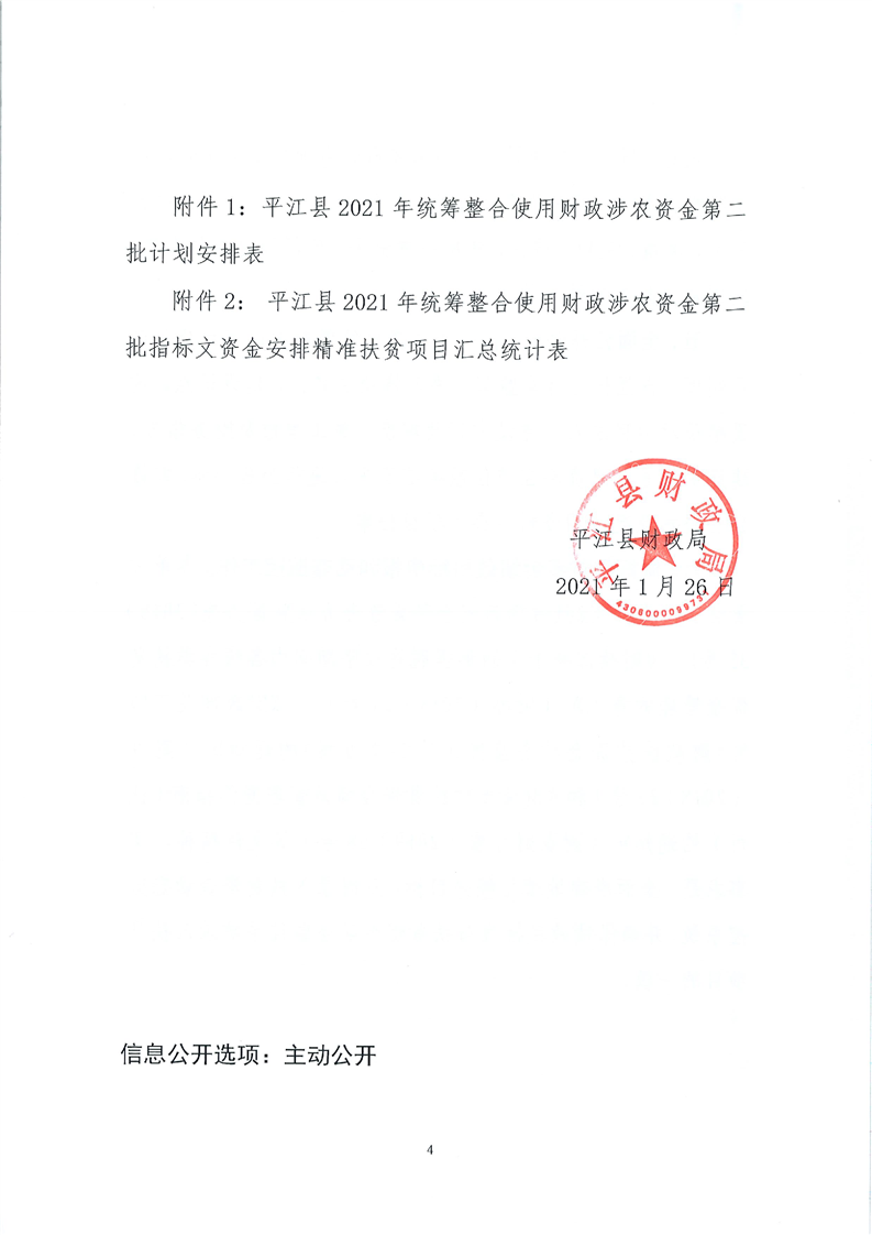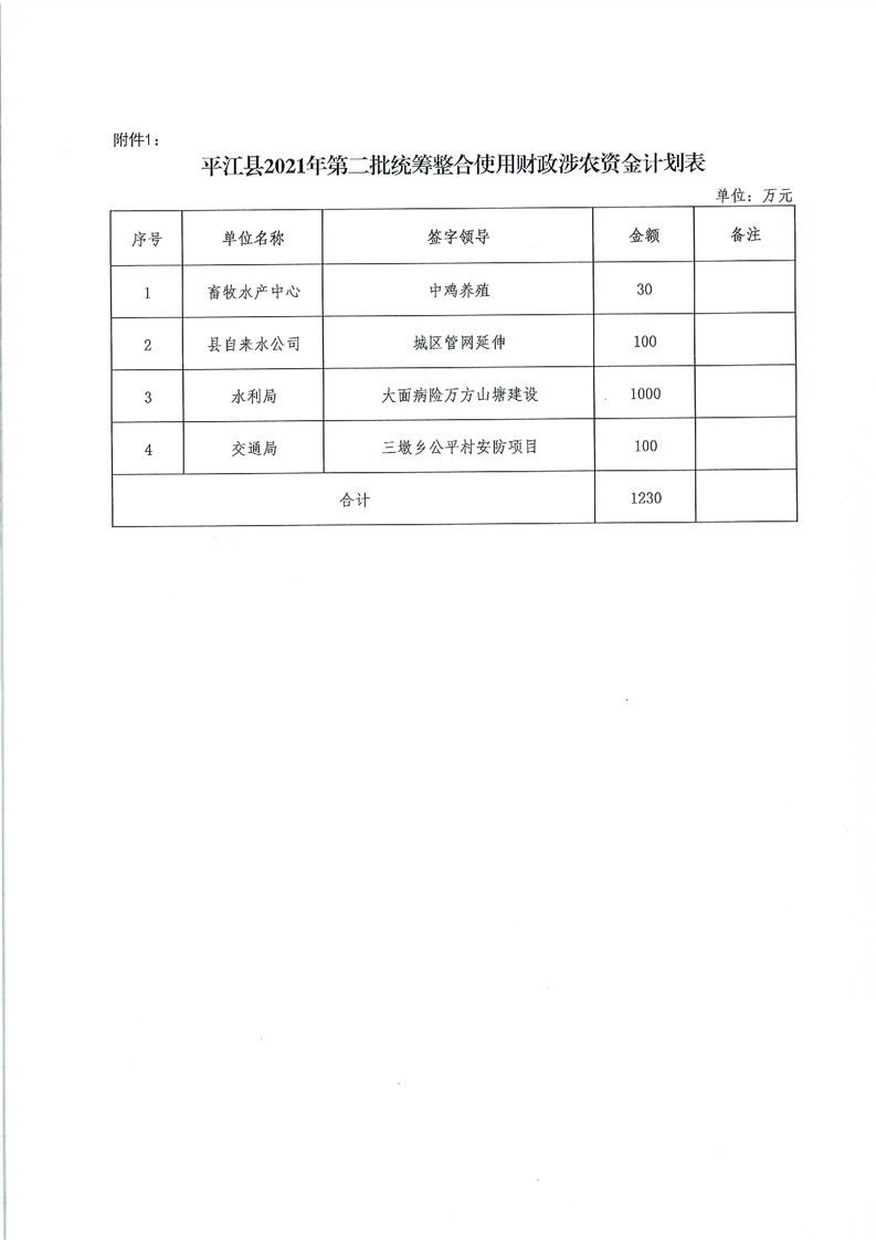 平财农指[2021]2号关于下达2021年第二批统筹整合使用财政涉农资金项目计划的通知