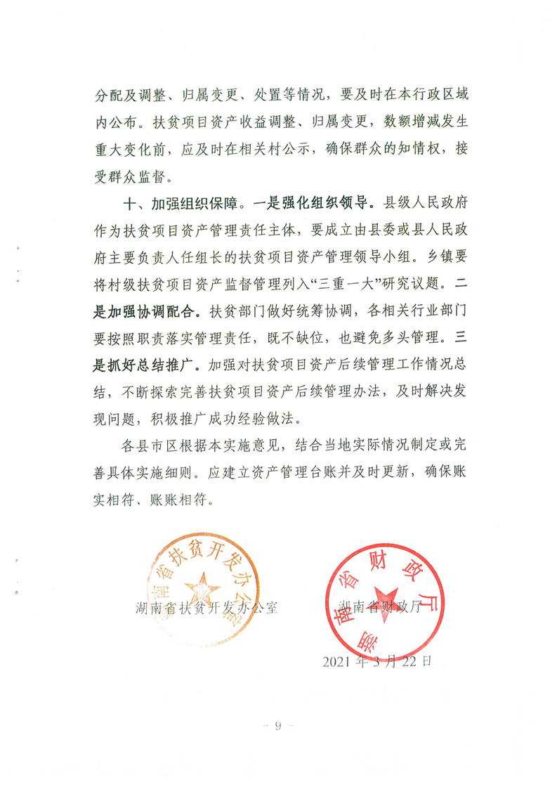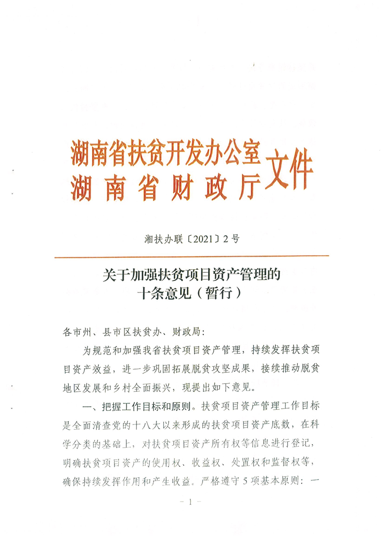 湘扶办联〔2021〕2号-关于加强扶贫项目资产管理的十条意见(暂行)
