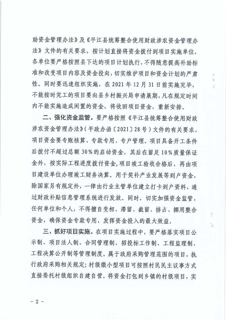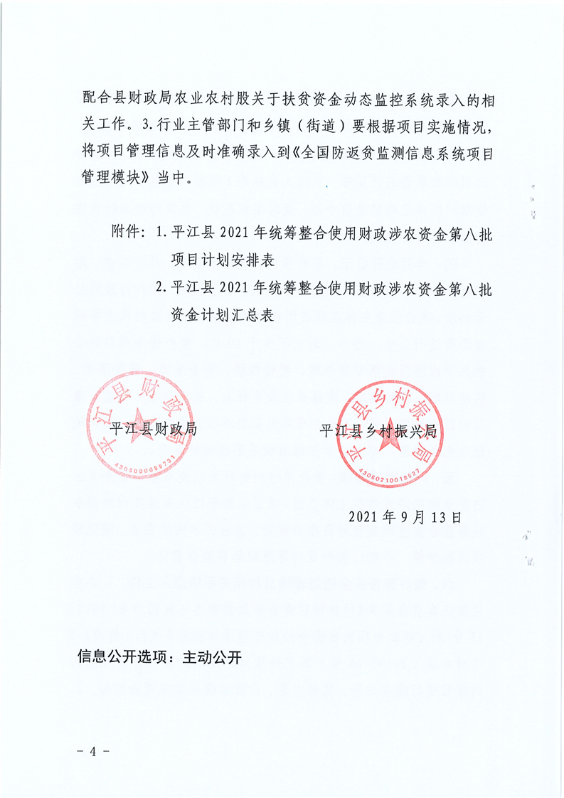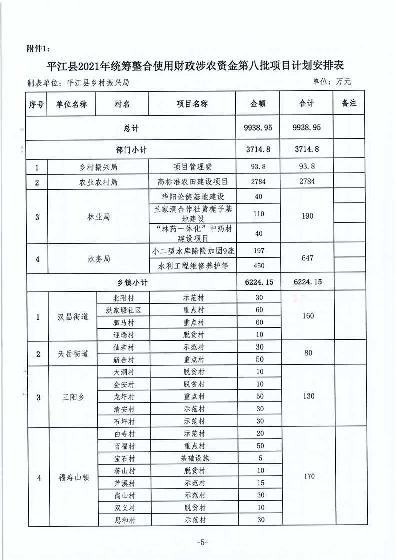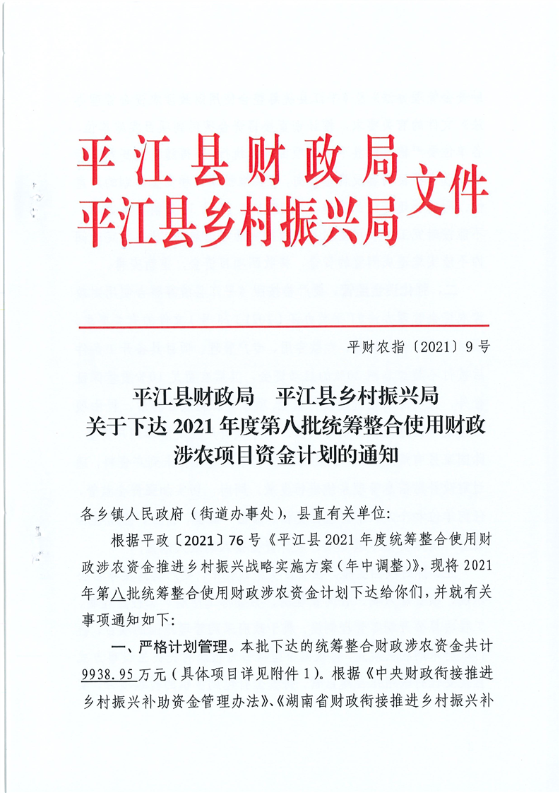 平财农指〔2021〕9号 关于下达2021年度第八统筹整合使用财政涉农项目资金计划的通知