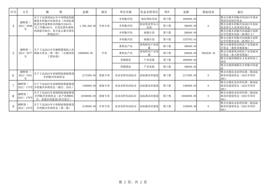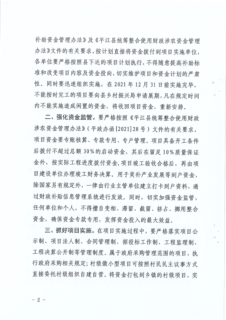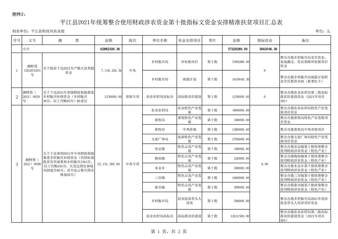 平财农指〔2021〕11号 关于下达2021年度第十统筹整合使用财政涉农项目资金计划的通知