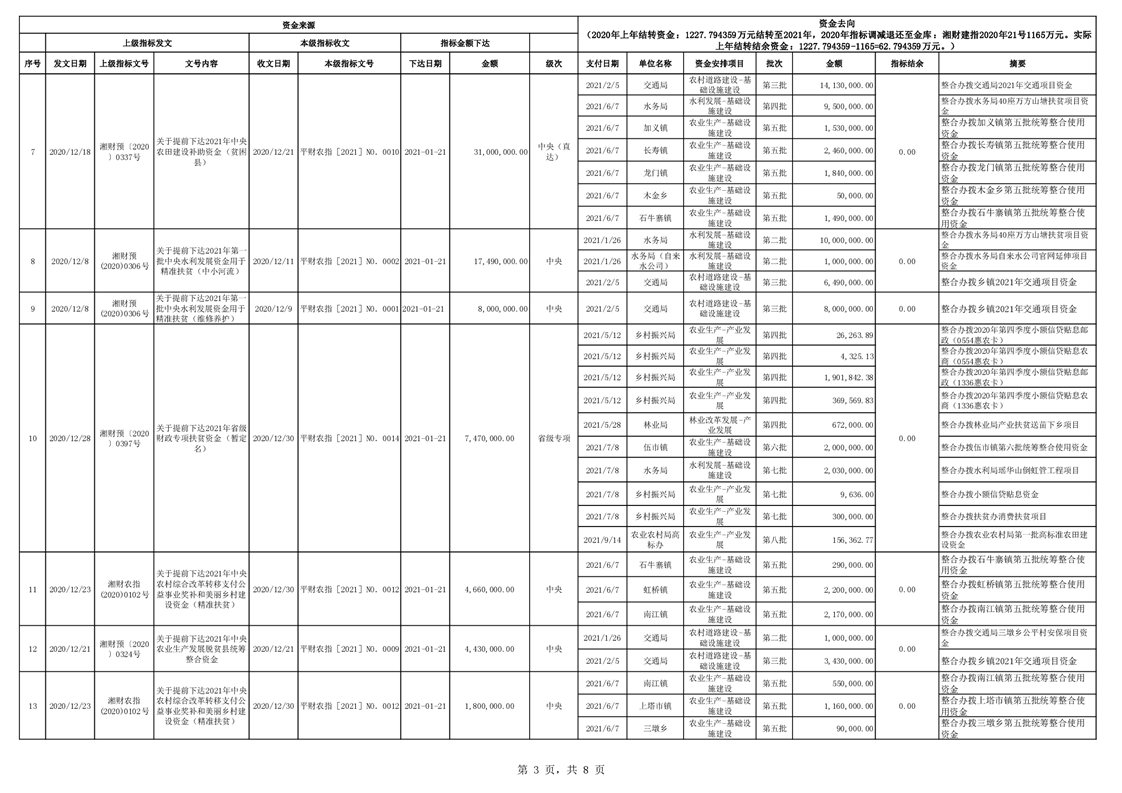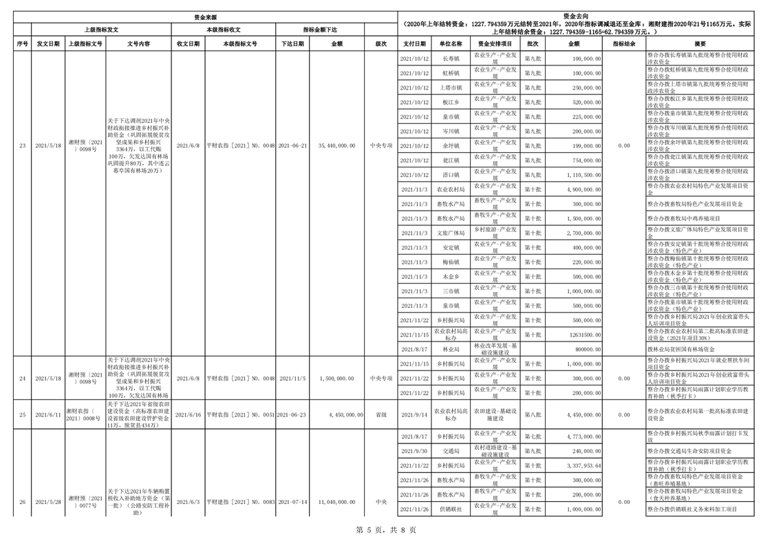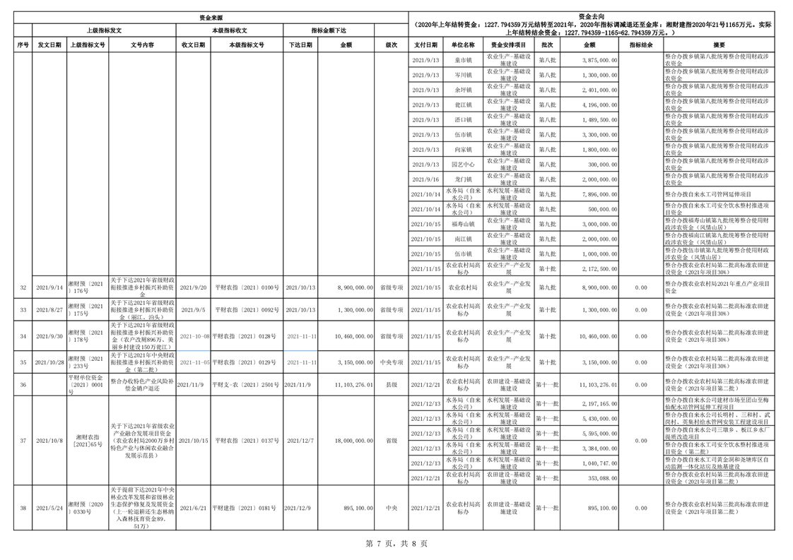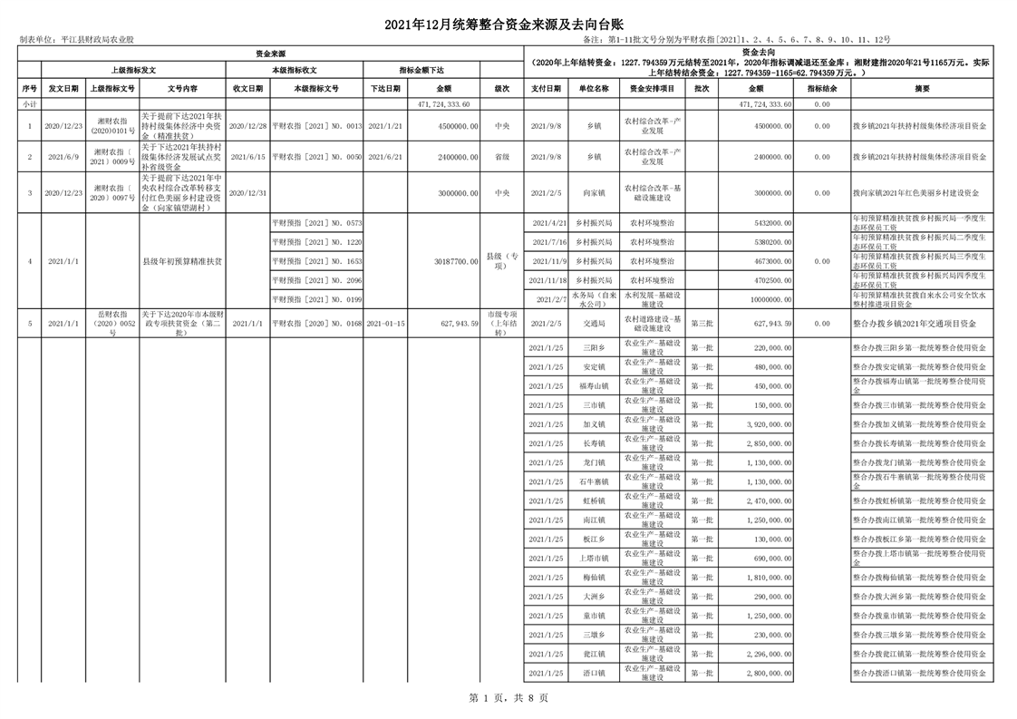 2021年统筹整合使用财政涉农资金指标分配台账