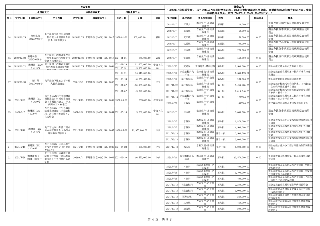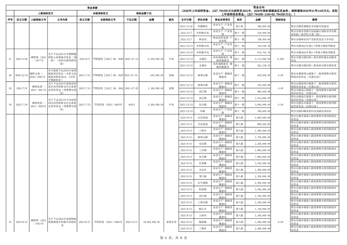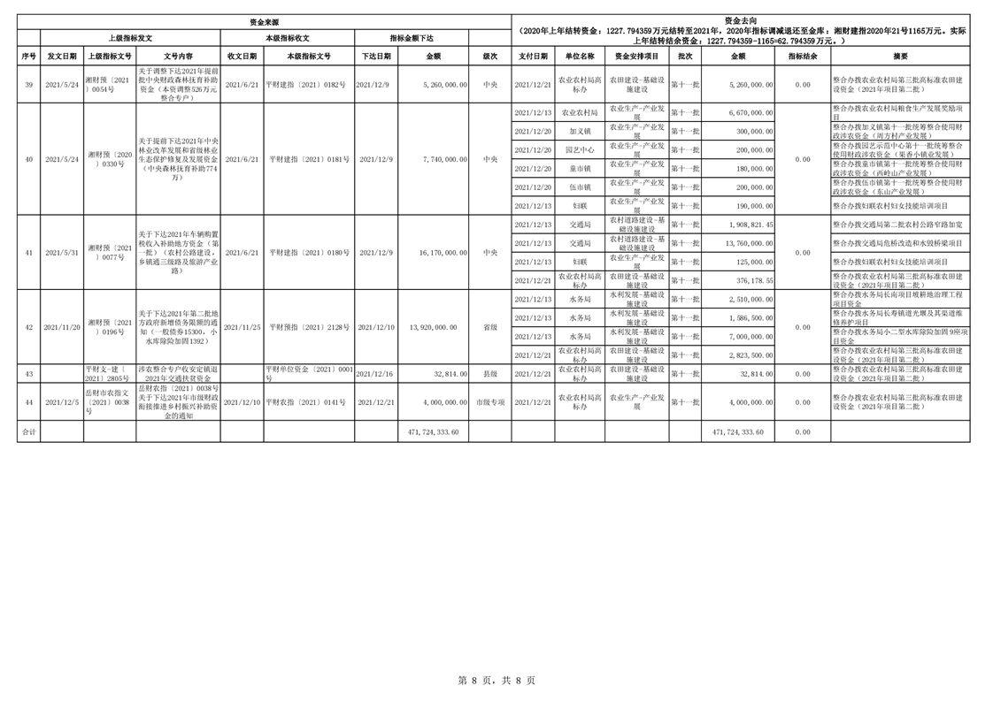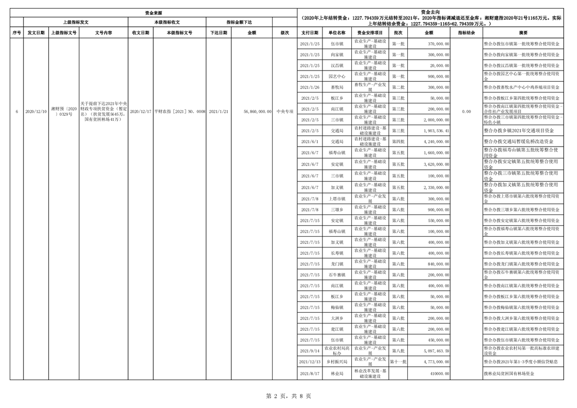 2021年统筹整合使用财政涉农资金指标分配台账