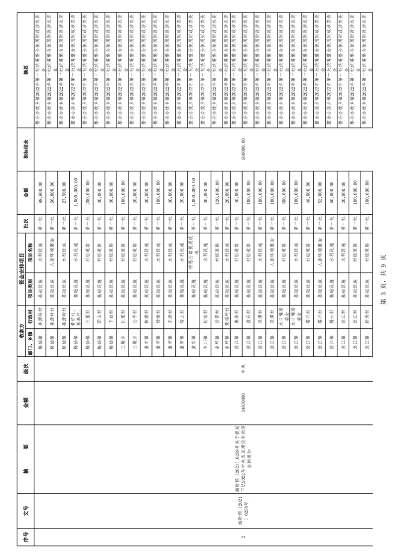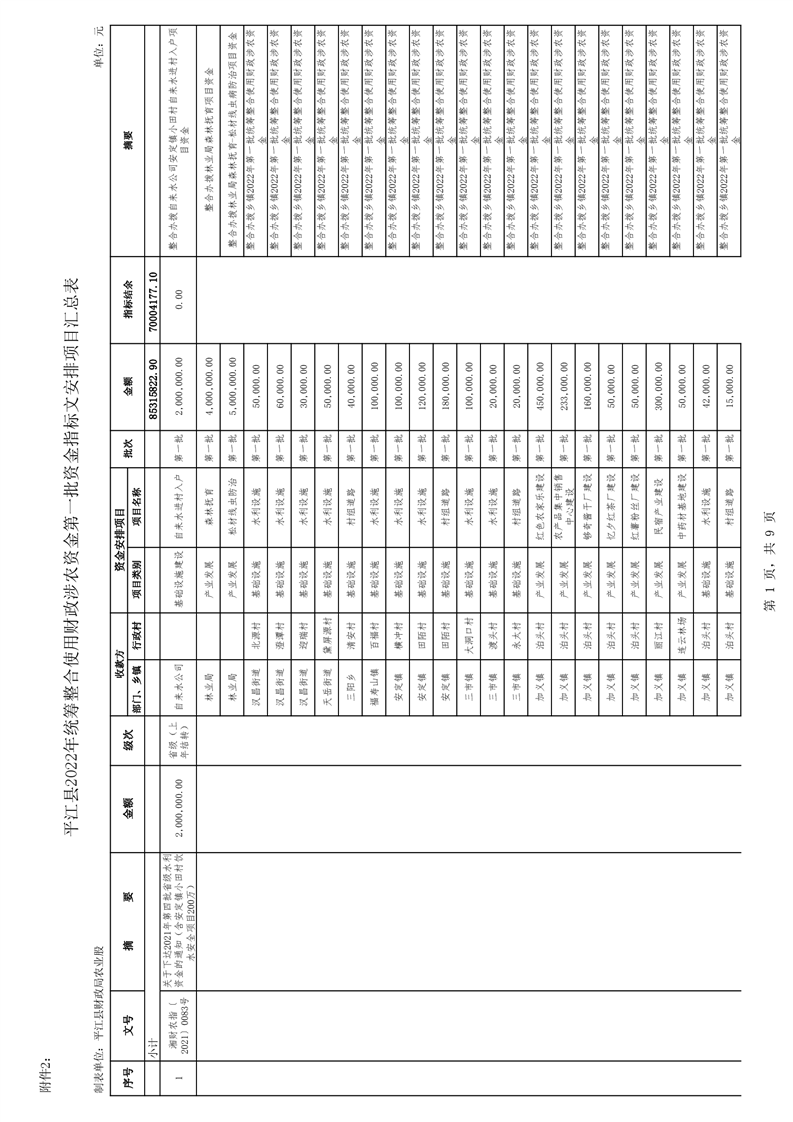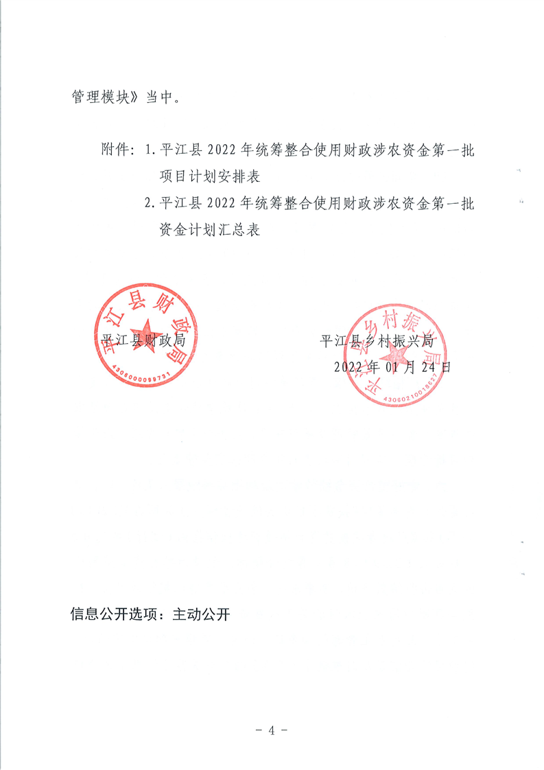 平财农指〔2022〕01号 关于下达2022年度第一统筹整合使用财政涉农项目资金计划的通知