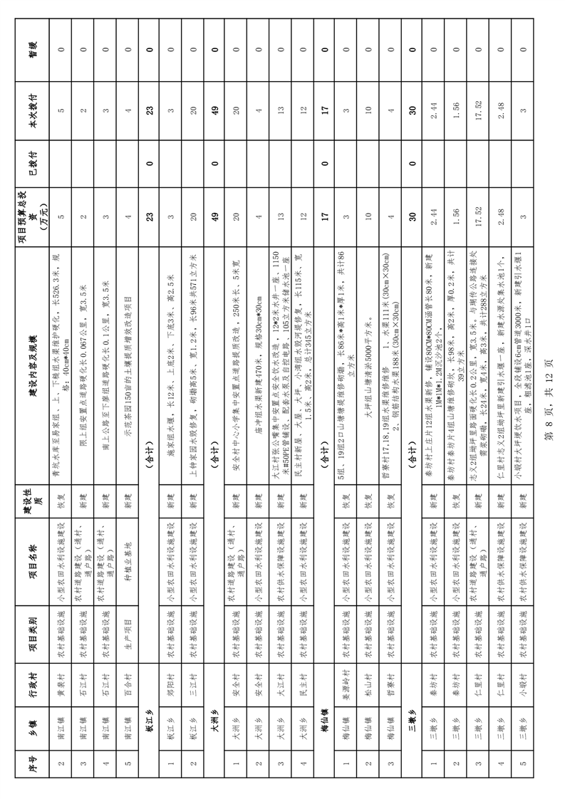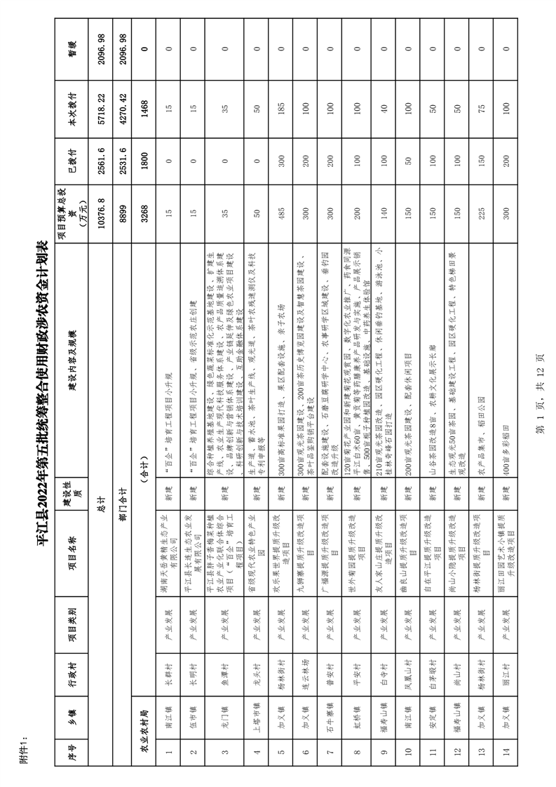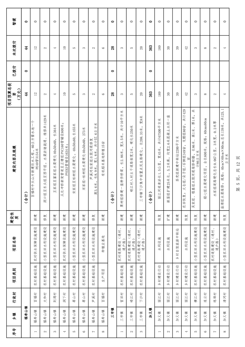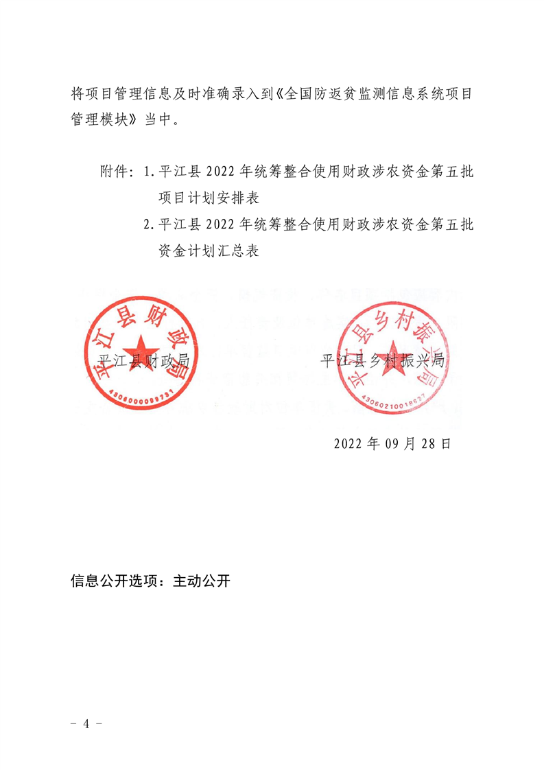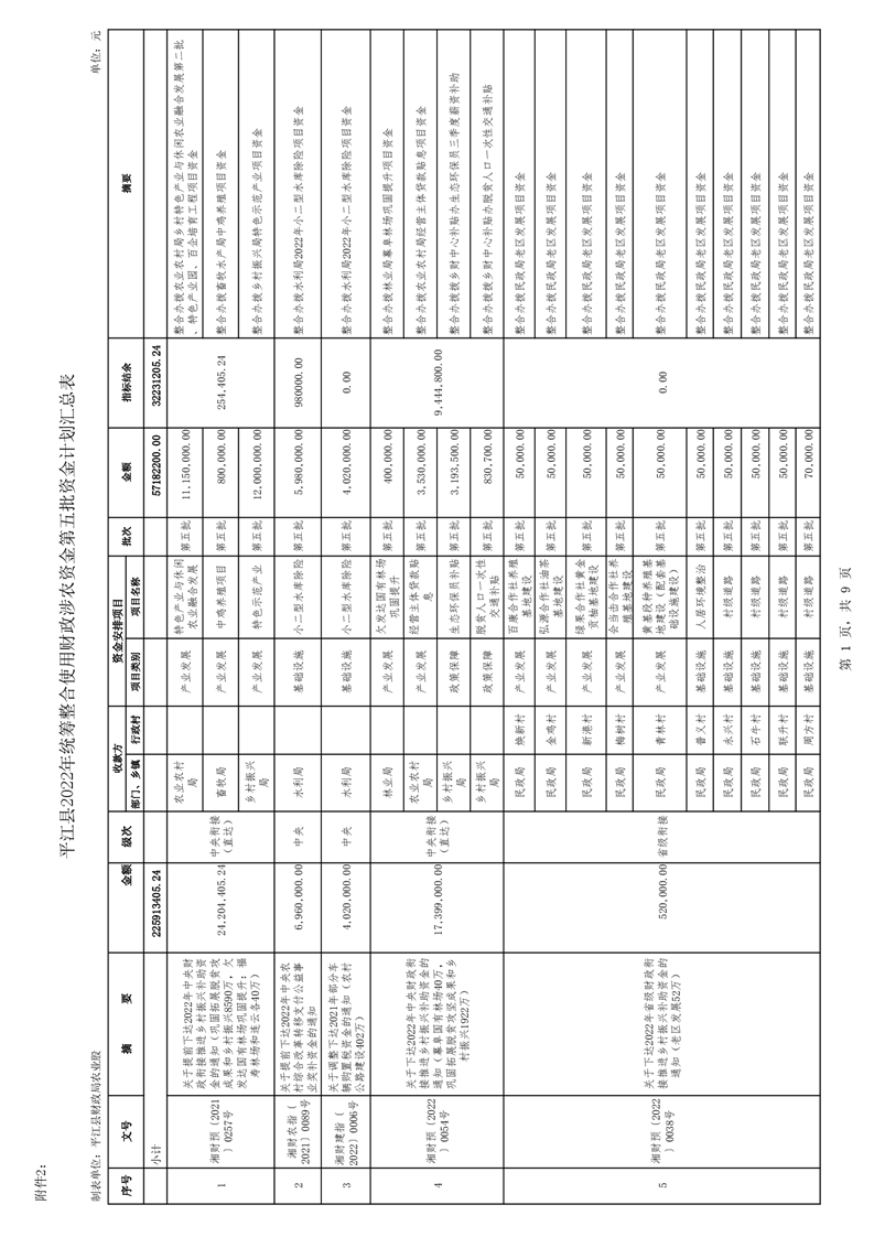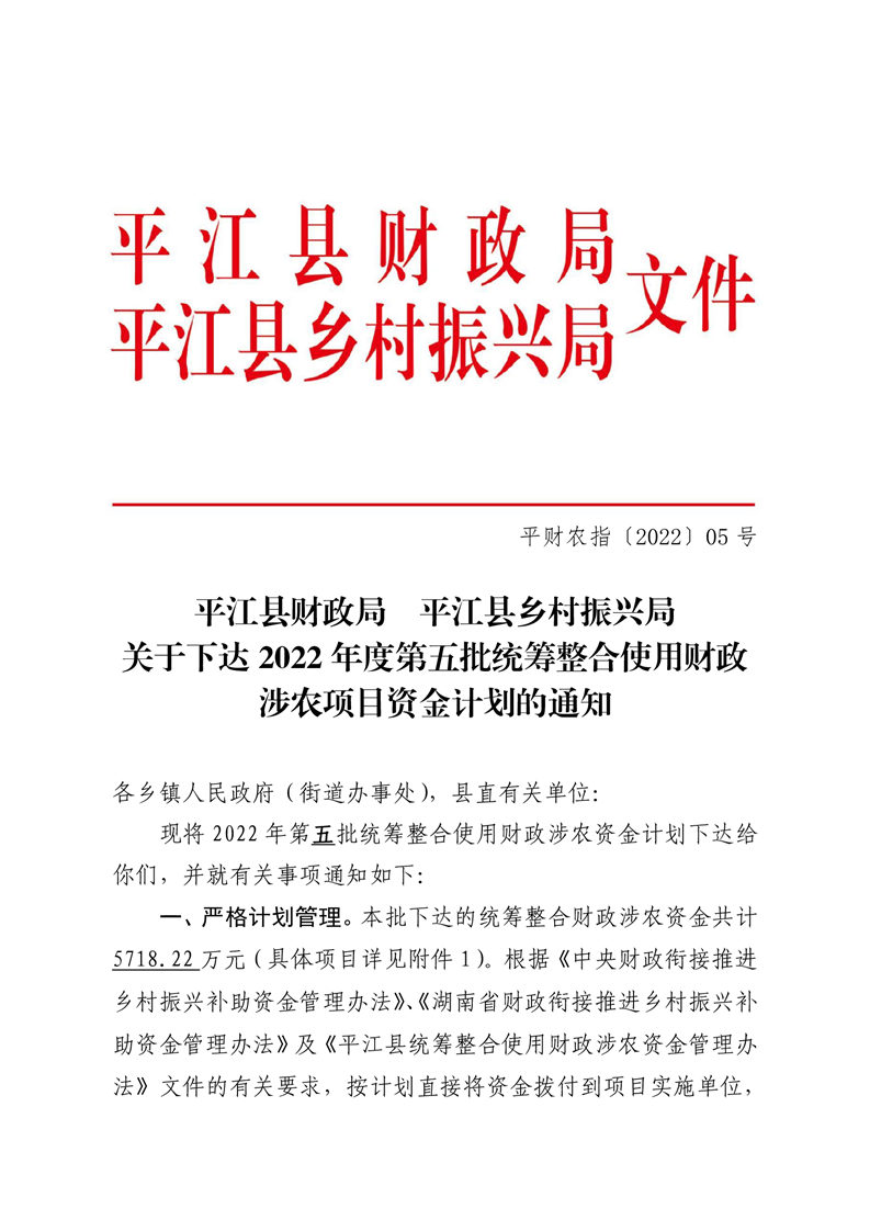 平财农指〔2022〕05号 关于下达2022年度第五批统筹整合使用财政涉农项目资金计划的通知
