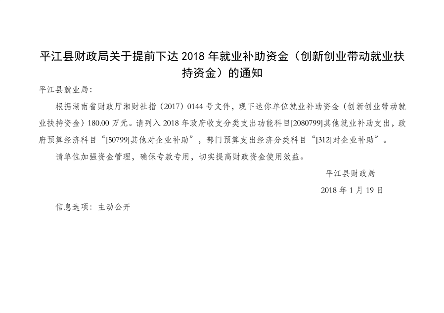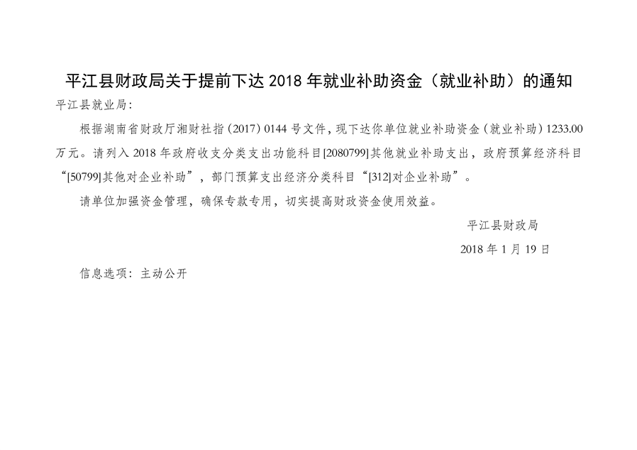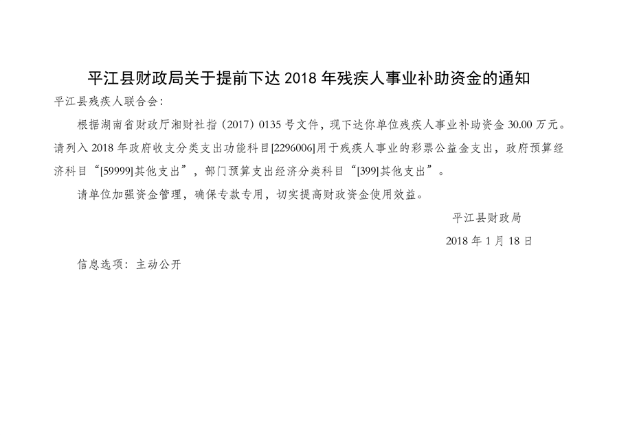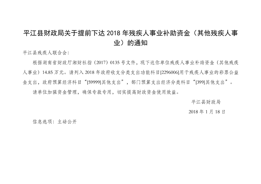 2018年1-3月份专项资金公示(社会保障类)