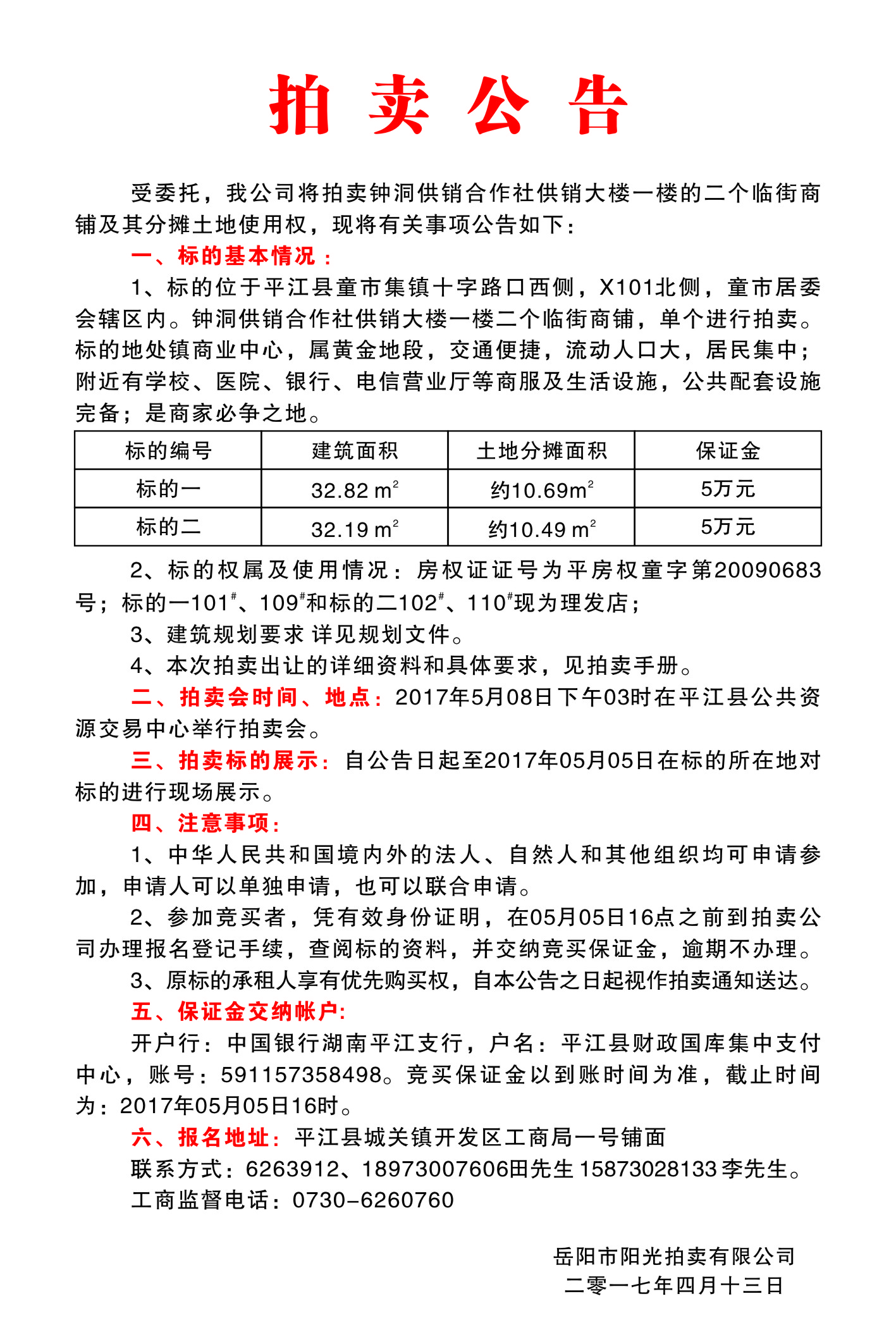 钟洞供销合作社供销大楼一楼二个临街商铺拍卖公告