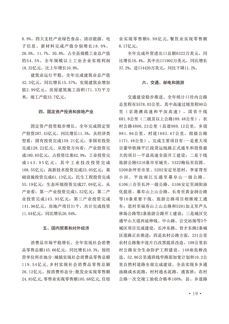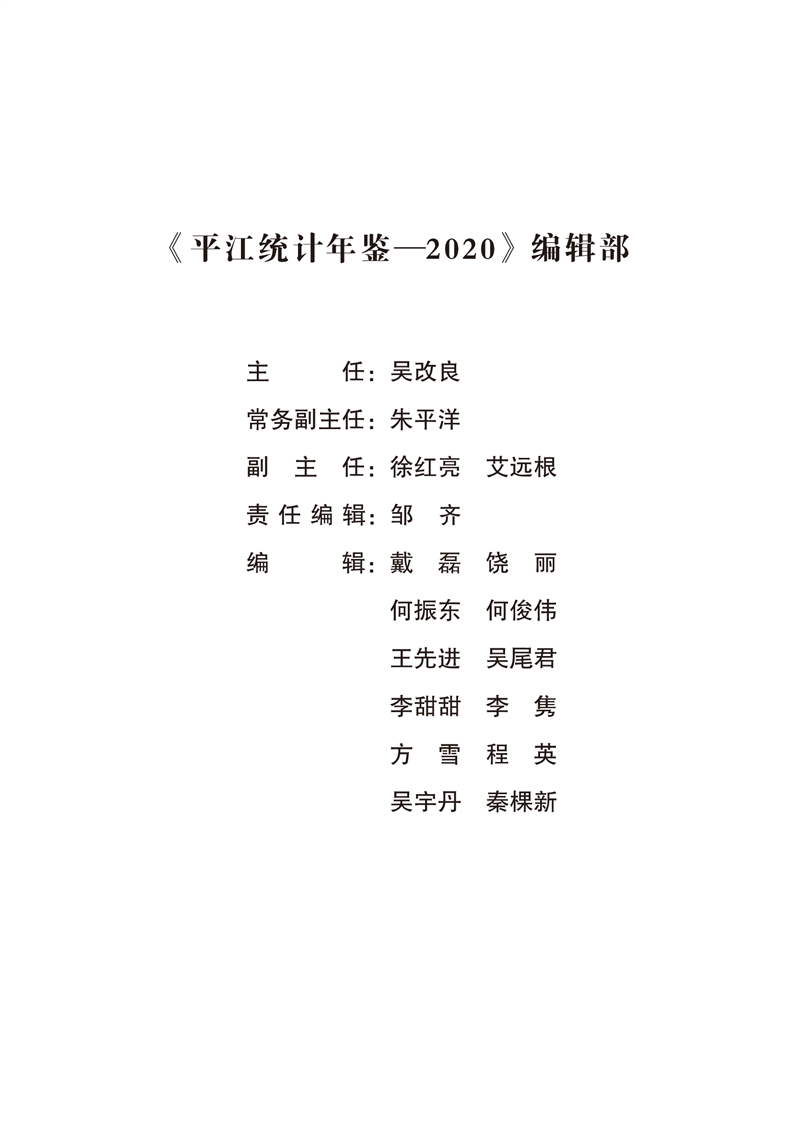 2020年平江统计年鉴