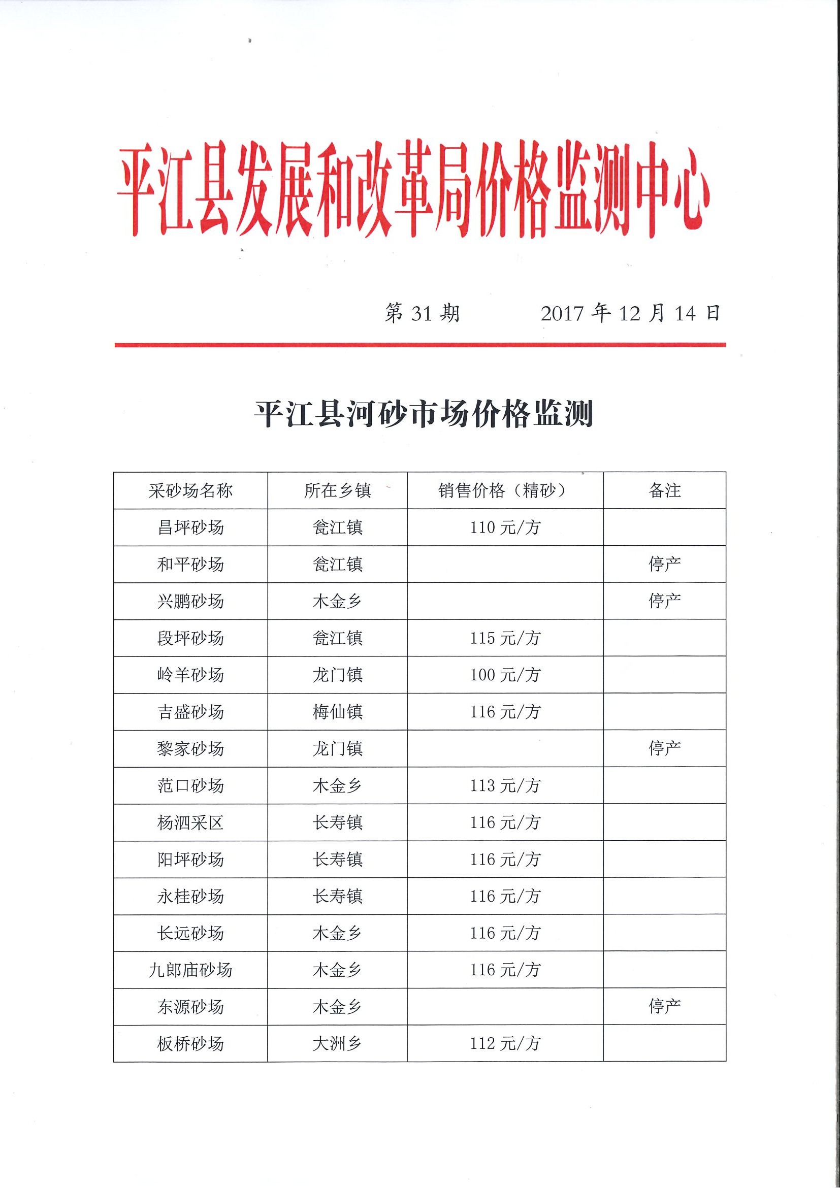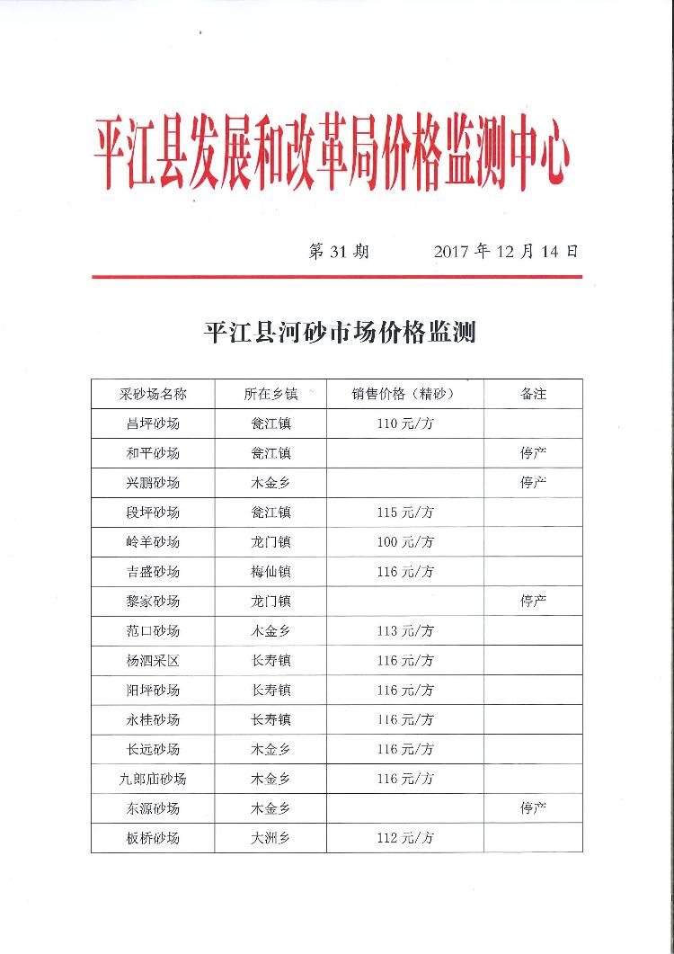 平江县河砂市场价格监测