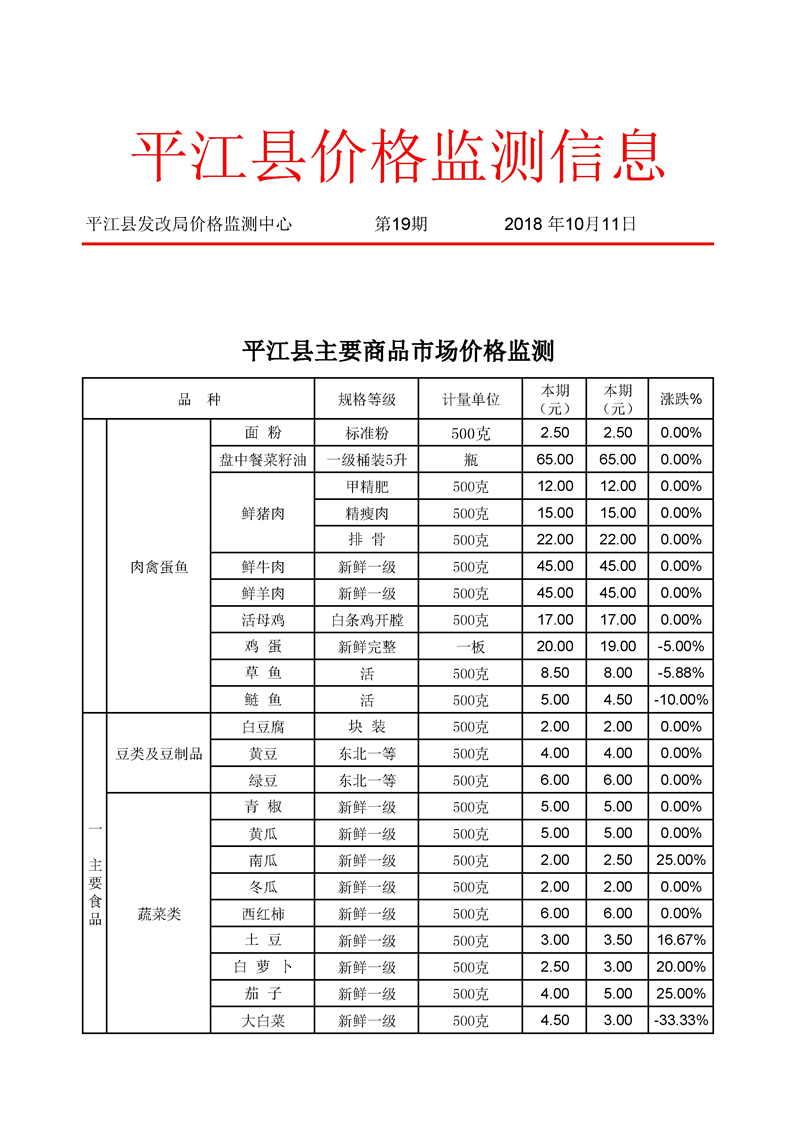 平江县价格监测信息第19期