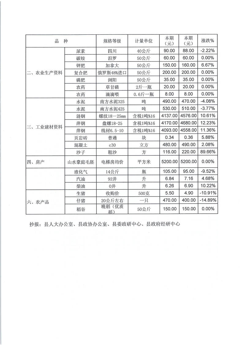 平江县主要商品市场价格监测信息第9期