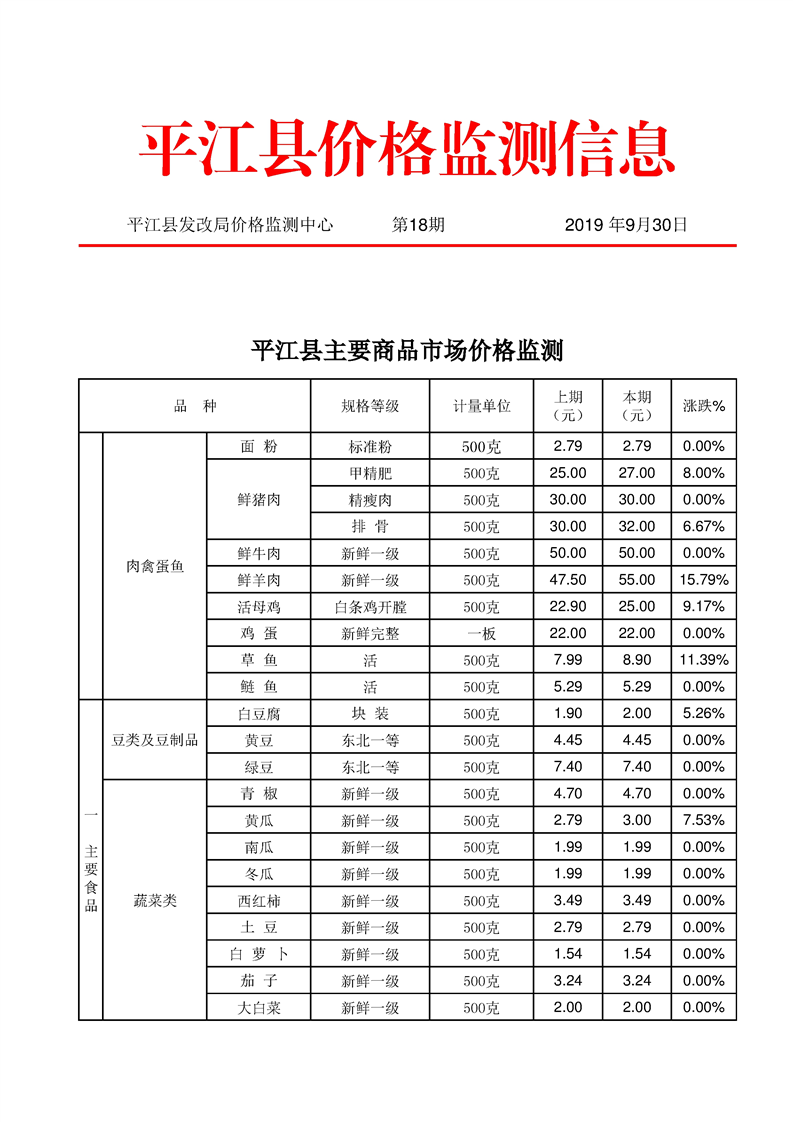 平江县价格监测信息2019年第18期