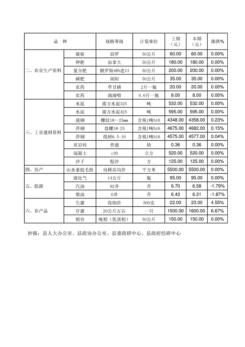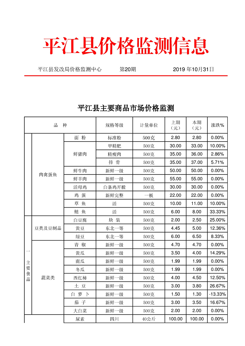 平江县价格监测信息2019年第20期