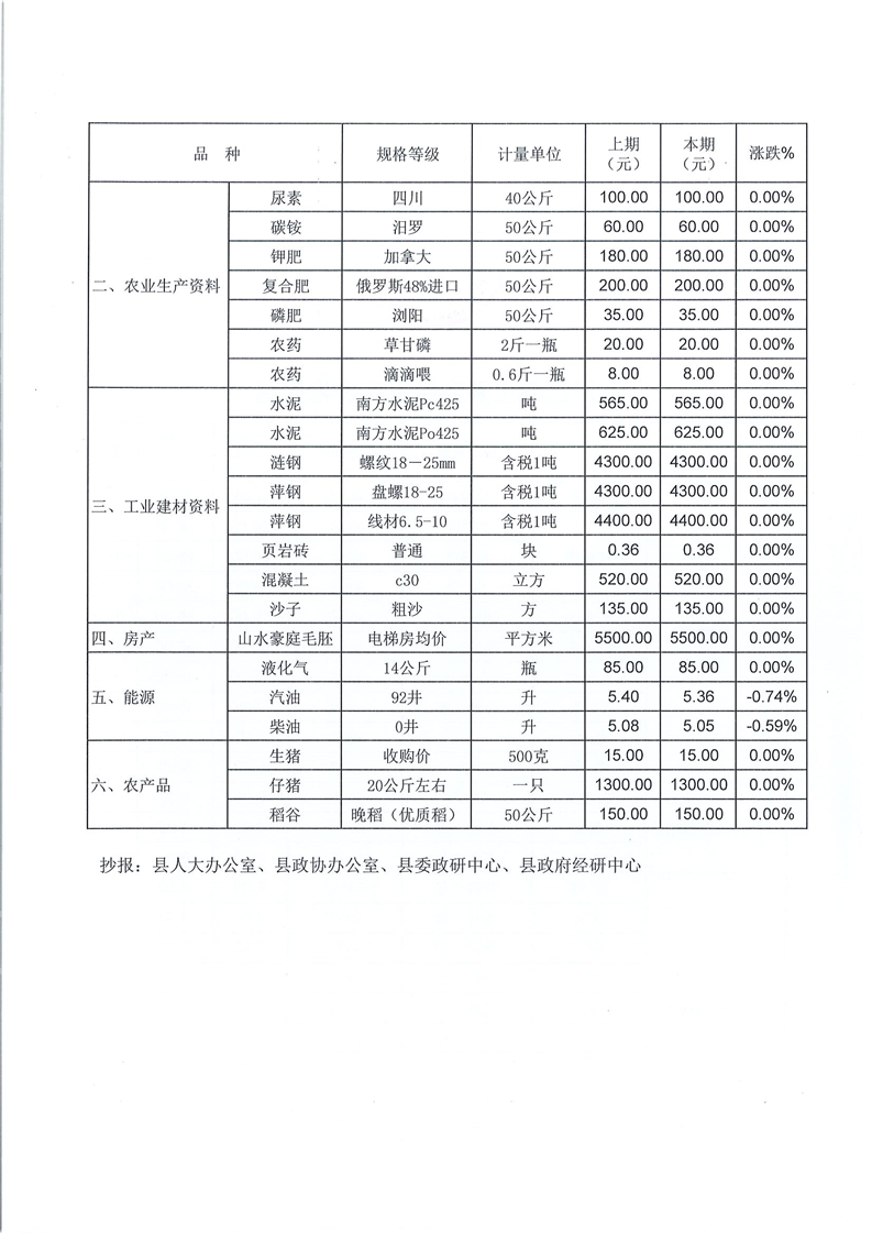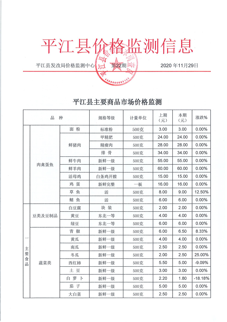 平江县价格监测信息2020年第22期