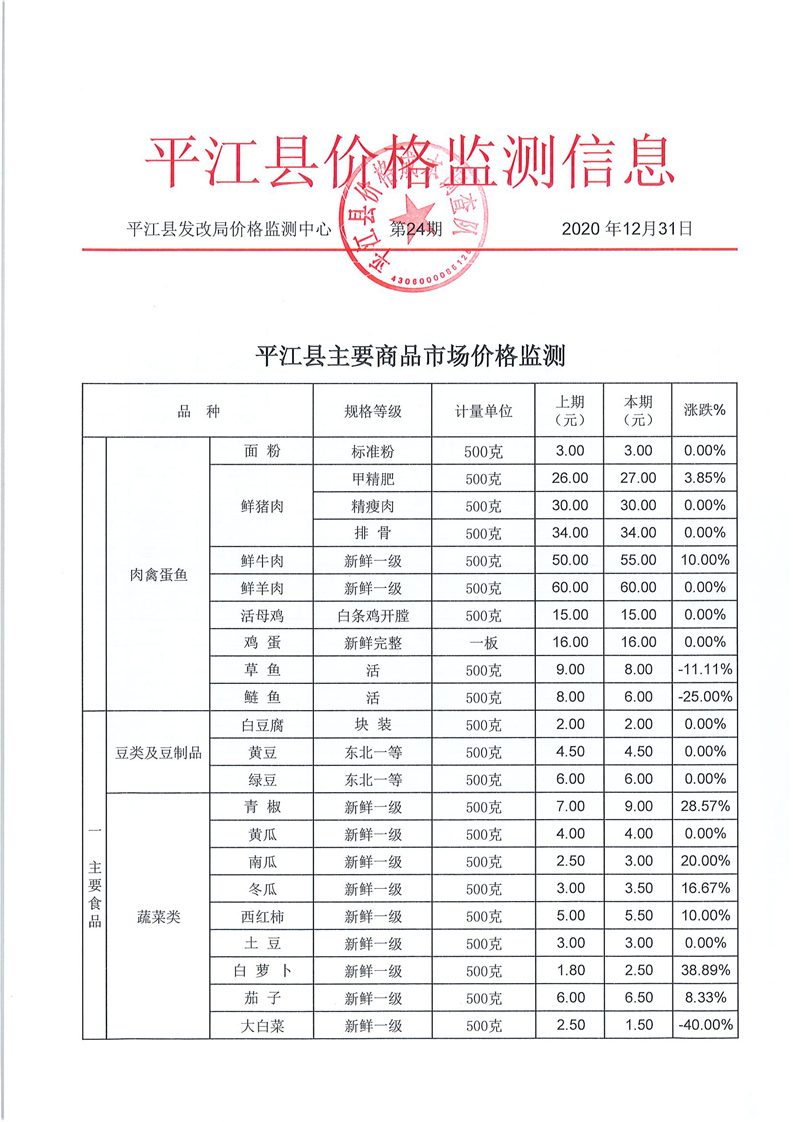 平江县价格监测信息2020年第24期
