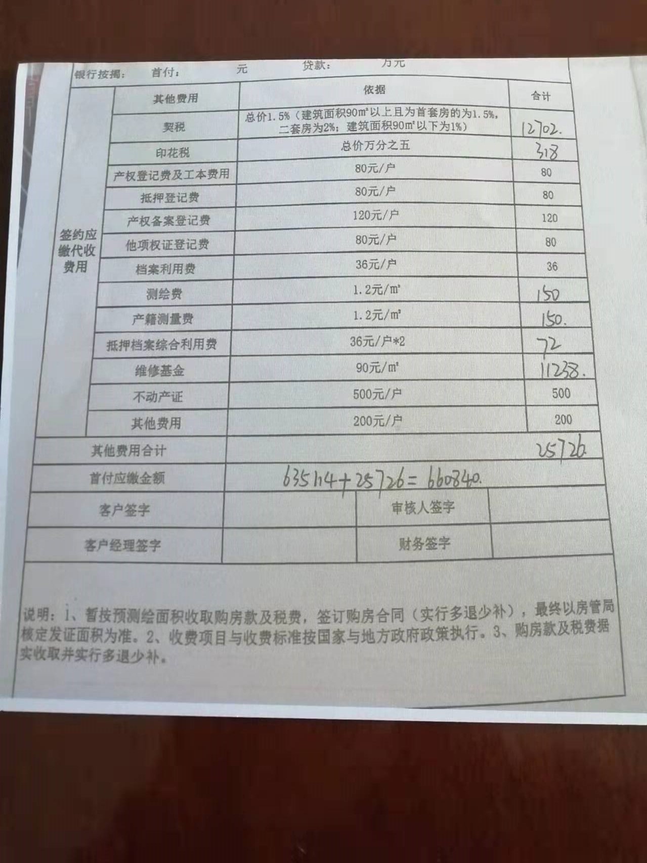 我于2019年1月份购买了御园壹号商品房一套,建筑面积124.78平方米,开发商收取如附件中费用合理吗? |