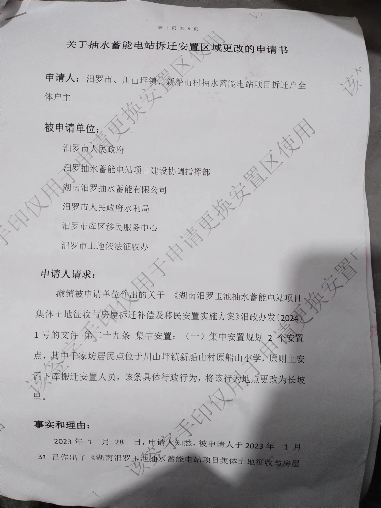 汨罗市川山坪镇新船山村抽水蓄能电站项目拆迁户全体户主强烈要求政府更改原来安置方案,将安置点千家坊移民安置点更改为长坡里,希望市长能帮助村民解决这个问题。 |