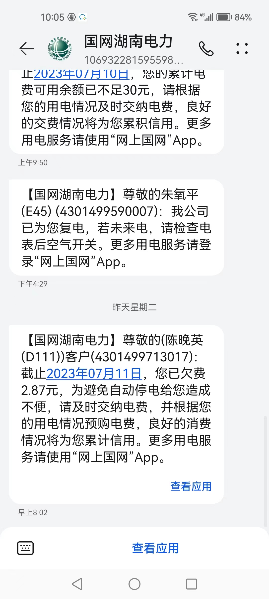 县电力公司将不同客户的联系方式全部设置为我的18390189555的手机号码,导致我的手机每天就是频繁地接受电力报修、送电、停电、客户欠费等各种无关骚扰信息(有图为证),至今已确定张燕飞(D553)、罗传平(B455)、邹雄荪(G74)、青龙庙2楼(A545)、陈晚英(D111)、易播夫(D71)、李看明(C118)、喻赍松(城东68)、朱氧平(E45)、朱四清(D871)、李治安(C333)、毛丰良(A315)、朱献忠(B429)、毛倩兮等等,都是绑定我的手机号码。请电力公司本着以人民为中心、以客户为中心的服务理念,以更加踏实的作风,实事求是地把客户的真实号码确定后改过来,不要让无关客户受尽无谓骚扰。 附件1:237183330.jpg 附件2:355600325.jpg 附件3:419837850.jpg 附件4:541742945.jpg 附件5:659415507.jpg 附件6:1357721510.jpg |