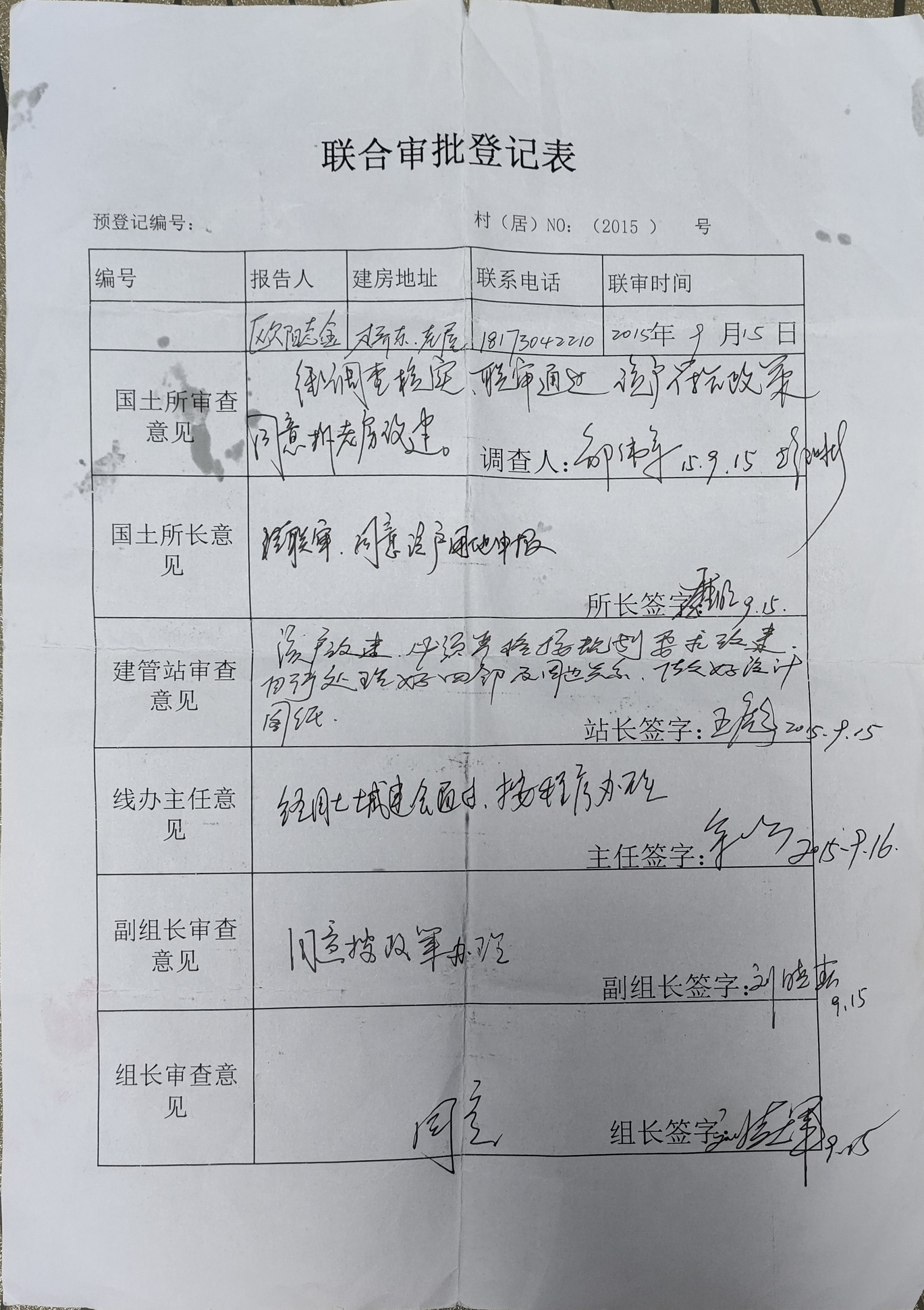 尊敬的领导: 我是平江县、南江镇、桥东村老屋组、山墈里的村民欧阳志金(身份证号码:43062619650317****),我的老宅基地位于桥东村老屋组415号,占地面积204㎡(详见1:《集体土地建设用地使用证示意图》编号:平集建(1997)字第0731020219)。由于房子始建于1994年、年老失修,且外部道路高于房屋,导致老房子处于低洼处,在长期风吹雨打下,天井外墙、厕所和厨房窗户倒塌、客厅长期积水严重,墙基不稳、墙壁脱落,存在重大安全隐患。 因此,在2015年9月份,经南江镇国土所、建管站及政府负责审批用地的领导审批同意本人拆老房改建(详见2《联合审批登记表》2015年9月)。本人在2016年10月份请专业人员将老房拆除,准备原地改建。此时,被南江镇国土所通知:因2016年镇政府领导换届,2015年的《联合审批登记表》无效,现不准改建房了,否则,将派城管、建管站等人强行拆除。 经多次沟通后,镇政府和国土所仍不同意老房改建,一直到2021年大约8月份,南江镇国土所通知我本人去签两张纸,说是就可以建房了。本人只读了小学一年级、小学未毕业,并不认识几个字,更不知道所签内容的真实意义到底是什么?因此,在国土所工作人员的多次唆使和催促下,欺骗本人签下了《拟征地确认书》、《放弃听证决议》(后经我儿子查询才知道),且,在签订以上文件前、后,桥东村委根本未通知我参加村民代表大会,更只字未提有征收土地的补偿和安置,我对此一无所知。 2023年7月初,因房子迟迟未建房,在我儿子询问下,我向国土所多次打听得知,要在老宅基地上建房,需自己拍卖获得自己的土地使用权,并需要缴纳100多万元巨款。这时,我才将以上情况告知我儿子,我儿子知道后,才意识到可能被镇政府及国土所人员欺骗。经湖南省国土资源征地信息网上查询,证实了我儿子的猜测属实,我祖辈留下的老宅基地,就这样被南江镇政府和国土所、桥东村委瞒天过海的变成了国有土地。试问:我自己有2个儿子、4个孙子,一家10口人生活,我怎么可能愿意将老宅基地同意转为国有土地?我们祖祖辈辈都是农民,我不可能放弃祖辈留给我的仅此一块农村集体土地。 在2021年8月份签下了《拟征地确认书》至今,南江镇政府和国土所、桥东村委并无一人告知我老宅基地是不能再建房了,而且,本人从始至终未收到任何补偿和安置的通知。害得我苦苦等了7年,这期间,因无房居住,导致我儿子、儿媳、孙子多年未能回家团聚,家庭关系不和谐,严重影响了我的家庭关系和幸福感。 通过本次投诉,我希望贵单位能够对此事进行调查,撤销《拟征地确认书》、《放弃听证决议》及以此文件作为基础,误导湖南省国土资源厅做出的有关决定。并将我的老宅基地退还给我,同意我在老宅基地上改建,以完成我家庭团聚的心愿、享受天伦之乐。同时,我也希望能够得到贵单位的及时反馈和回复,帮助我解决此事。 备注说明:此投诉报告已经在7月21日递交给南江镇信访办杨正,因为杨正违规在先(7月12日我第一次去上访,按信访条例规定,需要向我发放受理通知,但是杨正一直给给我,直到21日我找他要,他才给我一份复印件,原件至今未给我),因此,我对杨正本人的违规做法存在顾虑,特此再次向上级领导提交投诉。耽误领导时间,抱歉;同时,急需领导重视,帮助我解决问题,谢谢! 附件2:2016年联审手续01.jpg |