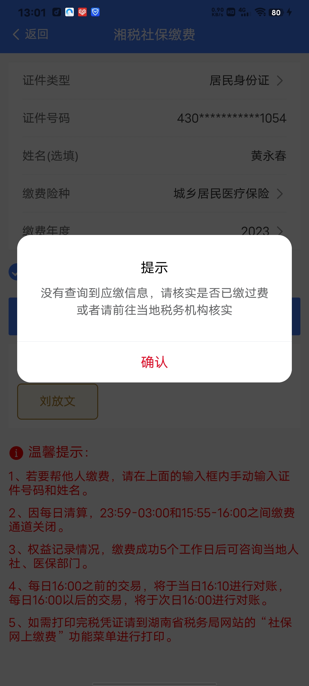 你咨询在湘税社保无法缴纳2023年的岳阳楼区城乡居民医保的问题?