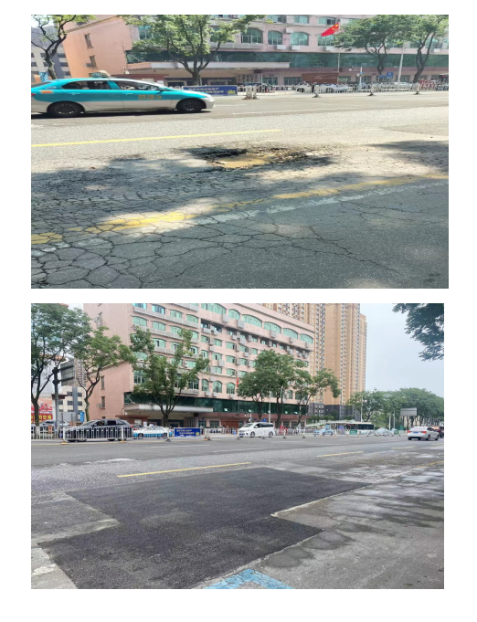 经我局属市市政维护管理中心现场核实,巴陵中路新路口九盛家居红绿灯路面确实存在坑洞,已于5月6号晚修复完毕。