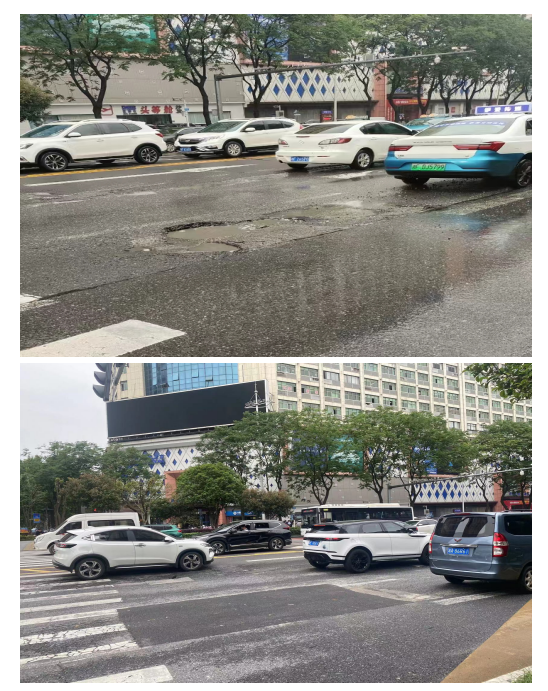中国人保红绿灯路口巴陵中路道路破损﹉