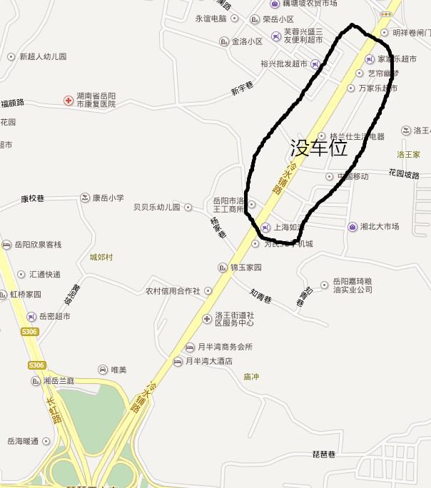 领导您好,琵琶王立交桥往冷水铺方向到岳阳新天地这段路,在洛王街道办事处附近都有划分车位,往下面藕塘坡这段路段都没有车位,这地段的房子都是以前的自建房,往路后面房子密集,没办法停车,只能经常停在了,没划车位的摩托车道上,(实际从来没影响过交通堵车之类的)最近是长期开出罚单,也亲眼看见几次邻居和交警有小小的对峙,今天又看见了一次吵闹,大家都很不愉快,希望领导能够视察下,要是合理,可以划出车位,这样对楼下的商户,楼上的住户,都是福祉,在此感谢!