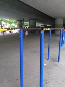 市政府有效落实全民健身计划,在琵琶王立交桥下安装了一些健身设施,为周围市民锻炼提供了方便。但由于这些器材使用年载已久,大多数器材均已锈蚀损坏(见图),给爱好健身的市民带来较大安全隐患,恳请政府更新相关器械,消除隐患,营造岳阳人人爱锻炼的氛围。