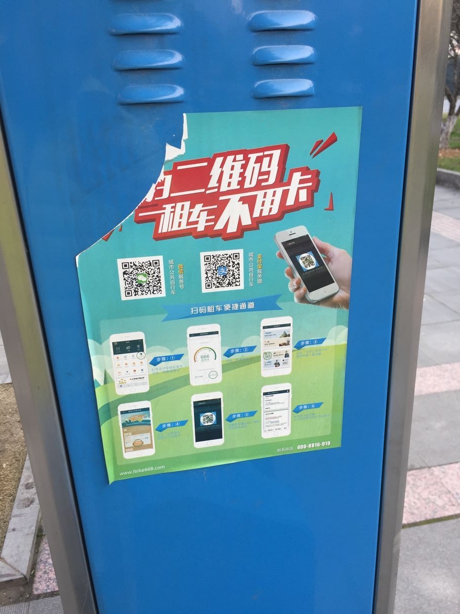 支持扫码租车,可以破解很多问题。监督者(政府)会免掉一部分监管的担忧,使用者会省去办卡、带卡、补卡等繁琐事务(当然,部分市民还有办卡需要),运营者会通过第三方保护好自己的利益。支付宝积分超过500就可以租车,全国各地的旅客朋友都可以在岳阳租车骑行,我想,有它的巨大好处。