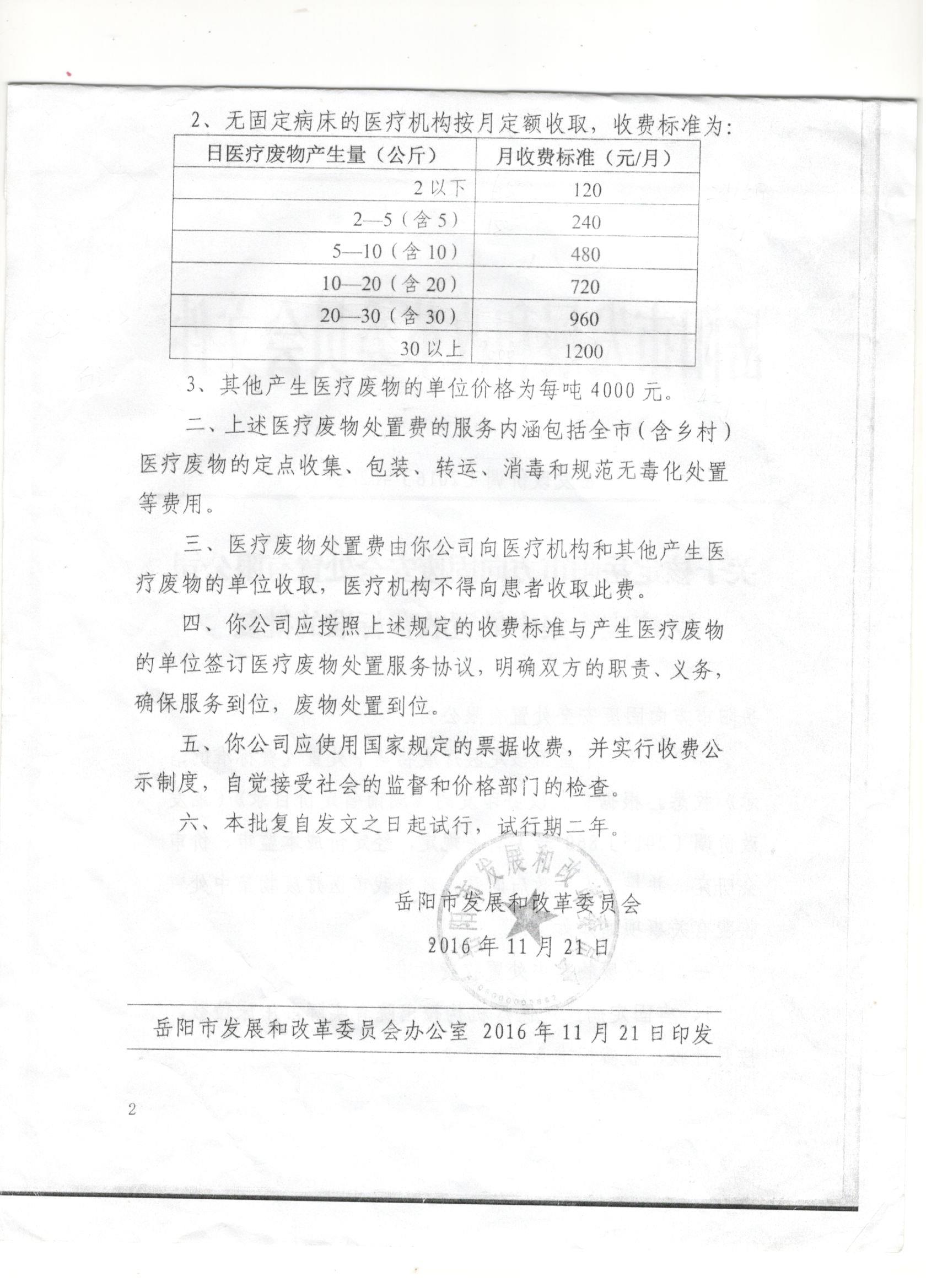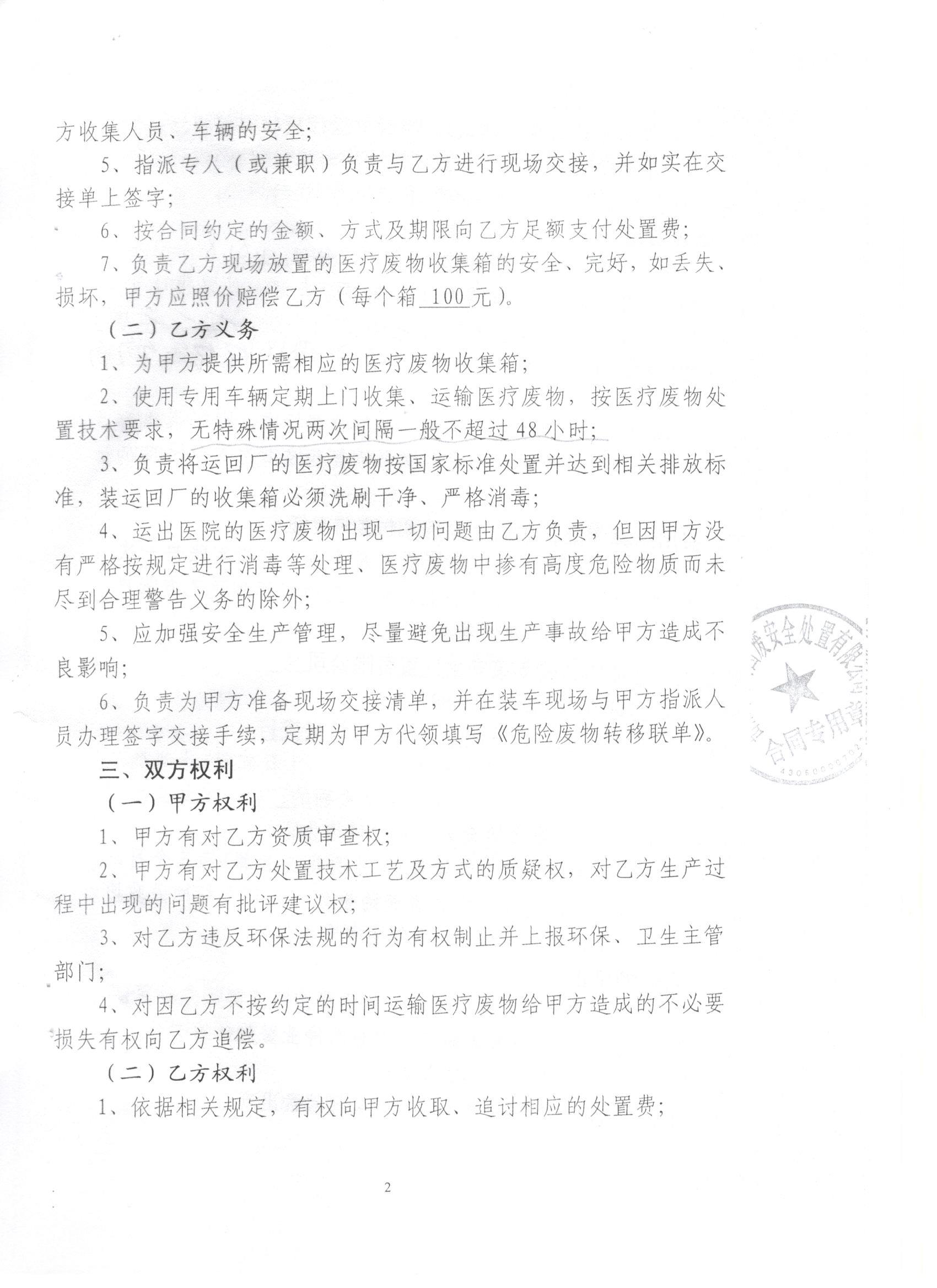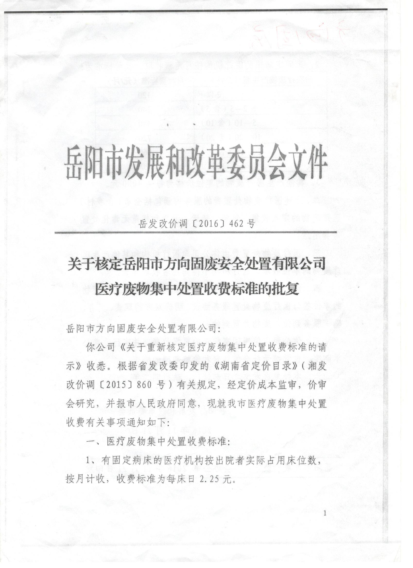 我司于2016年10月17日与岳阳市方向固废安全处置有限公司(以下简称“方向固废”)签订了《医疗废物委托处置合同》,有效期至2017年9月30日,合同价格为8000元。