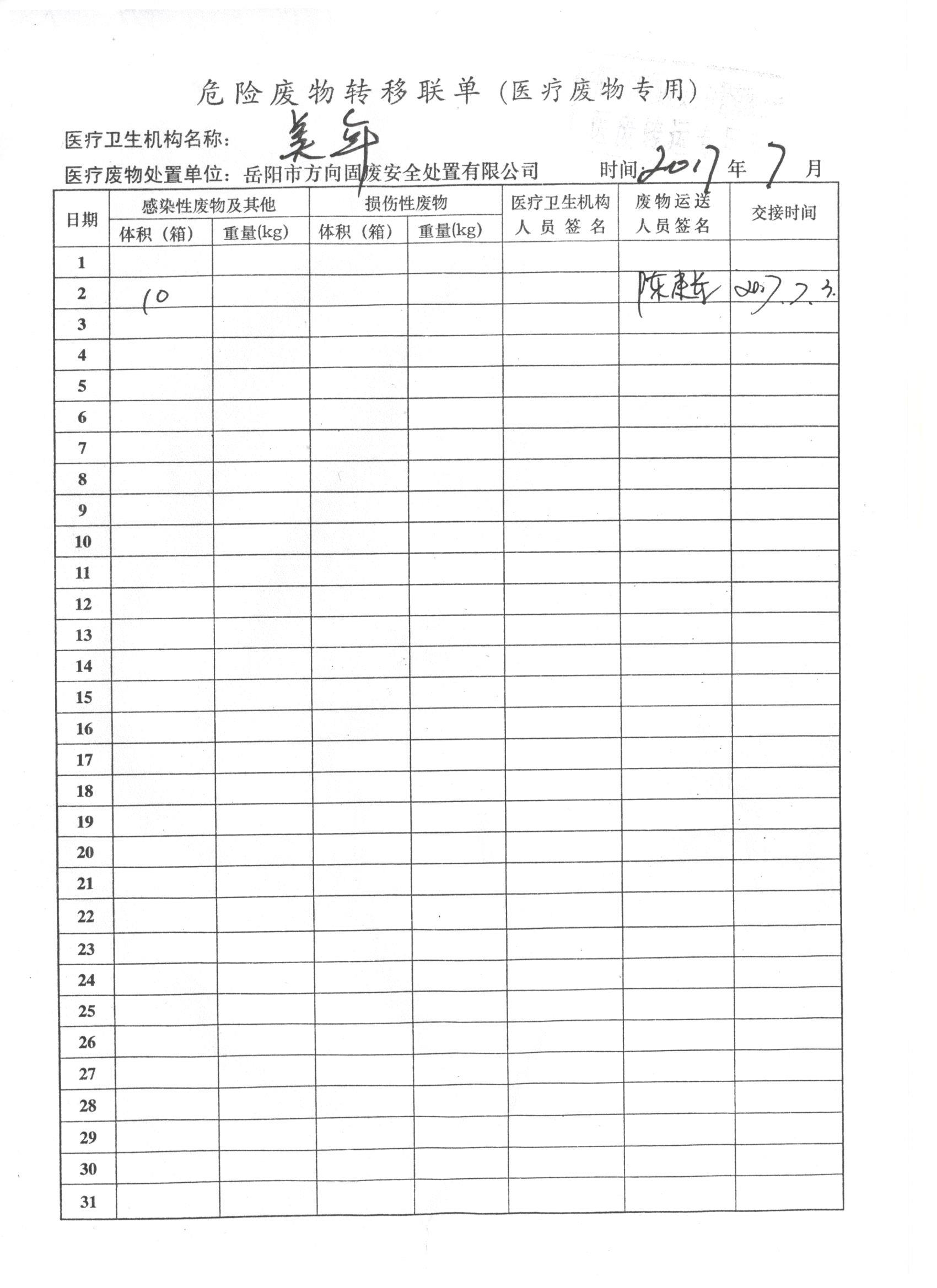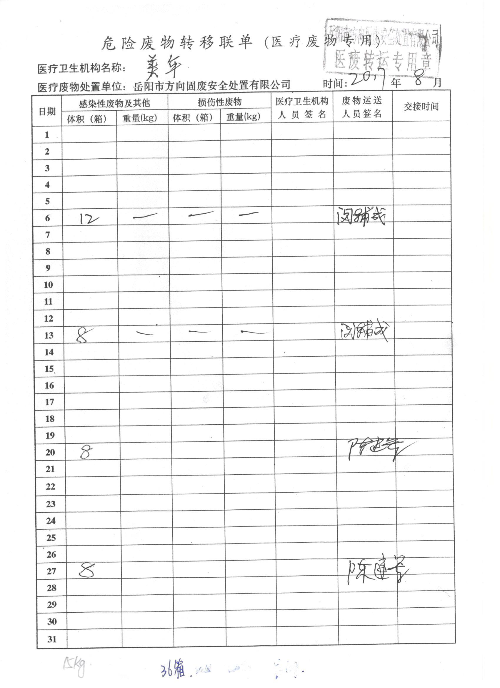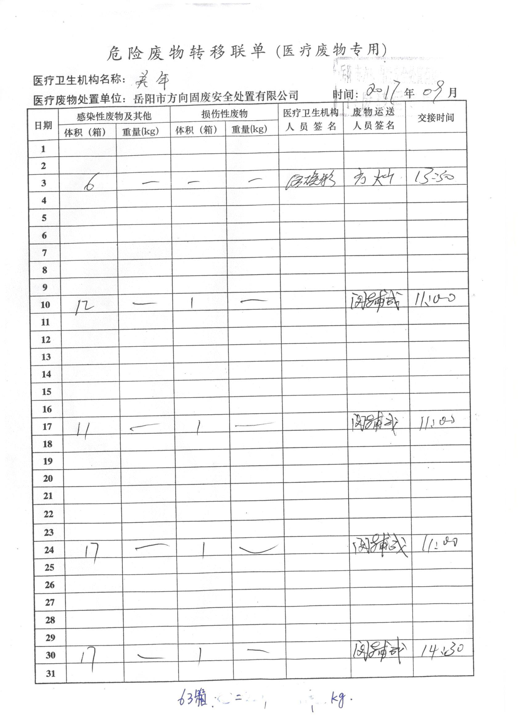 我司于2016年10月17日与岳阳市方向固废安全处置有限公司(以下简称“方向固废”)签订了《医疗废物委托处置合同》,有效期至2017年9月30日,合同价格为8000元。
