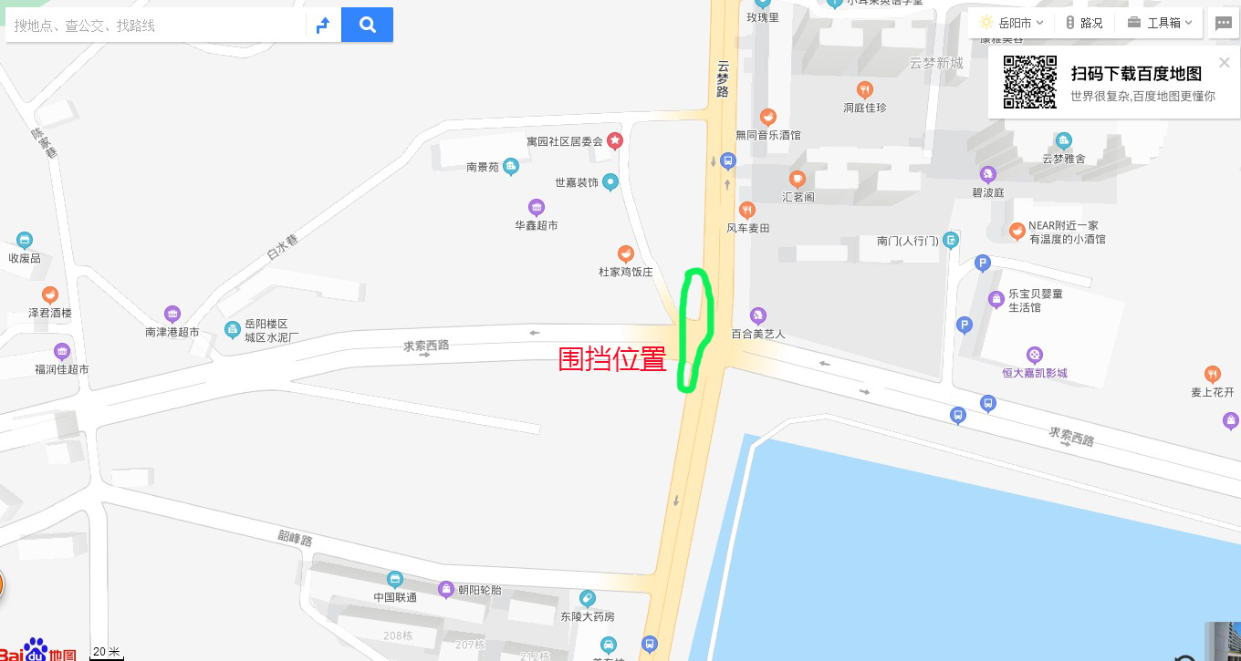 | 内容: | 云梦路与求索西路交叉路口附近(老水泥厂)施工围挡将人行道全部堵死,而且侵占了沿部分机动车道,云梦路往南步行或骑自行车的市民只能借道机动车道经过围挡区域,存在极大的安全隐患,盼相关部门改变围挡设置,或责令施工单位开辟临时人行步道,解决该路段市民通行安全问题。(市政围挡设置本来就是防止行人进入施工区域、免遭意外伤害的,此处围挡设置只方便了施工单位,确把行人赶上了复杂的机动车道,实属不该。) |