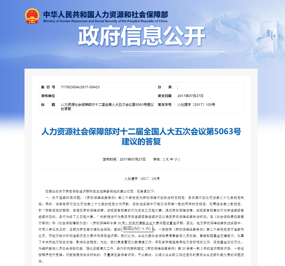 尊敬的吴县长: 您好!抱歉打扰您的工作,实属无奈。近日家办电器维修部接到员工诉求,要求为其补缴劳动合同年限内的社保(其2010年10月至今在本维修部工作,并签订了劳动合同)。经过多方咨询和国家法律文件查询,认为其诉求为合理诉求,本着不扩大矛盾、不引起更大纠纷的原则,经过双方协商同意按照相关政策规定为该员工进行社保补缴(合同期内),各自承担应该补缴的费用。我们到岳阳县社保局进行补缴申请时,社保局窗口人员反馈无法操作,不予受理。对此我们有异议。 按照湘人社发[2017] 103号文 《湖南省人力资源和社会保障厅关于贯彻落实湘人社发[2017]103号文件的通知》,明确规定了未及时缴纳社保人员的补缴方案和要求,个体户员工也在补缴范围内。同时,人力资源社会保障部对十二届全国人大五次会议第5063号建议的答复(人社建字〔2017〕105号),也明确做了如下规定:“经办机构接到超过《劳动保障监察条例》第20条第一款2年的追诉期投诉后,一般也按程序进行受理。对能够提供佐证材料的,尽量满足参保者诉求,予以解决,以减少企业职工临近退休时要求企业足额补缴欠费的问题发生。”。为此我们对于岳阳县社保部门不受理员工社保补缴的行为不能接受。 为此,恳请吴县长责成有关部门调查此事,并按国家和湖南省有关规定妥善处理补缴事宜。家办维修部承受极大的人情和舆论压力,正常营业受到影响。如岳阳县不能解决上述社保补缴事宜,我们将整理详细资料和相关部门拒绝受理的相关证据,进一步向岳阳市、湖南省和国家人社部相关部门反映情况,直至此事妥善解决。 以上问题,恳请吴县长百忙之中拨冗回复为盼。谢谢! 此致 敬礼! 邹生 附件1:关于妥善处理企业职工基本养老保险费缴纳有关问题的通知》(湘人社发〔2017〕103号).pdf 附件2:人社部 补缴规定.png |