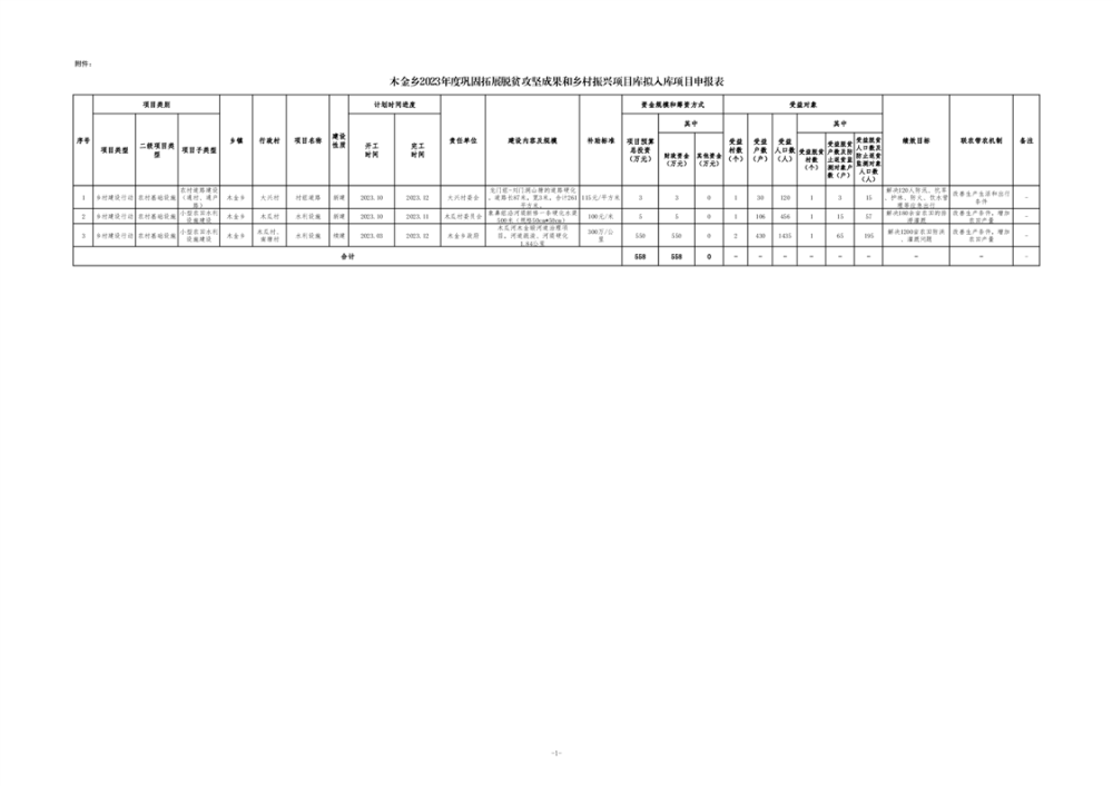 木金乡2023年度巩固拓展脱贫攻坚成果和乡村振兴项目库拟入库项目申报表